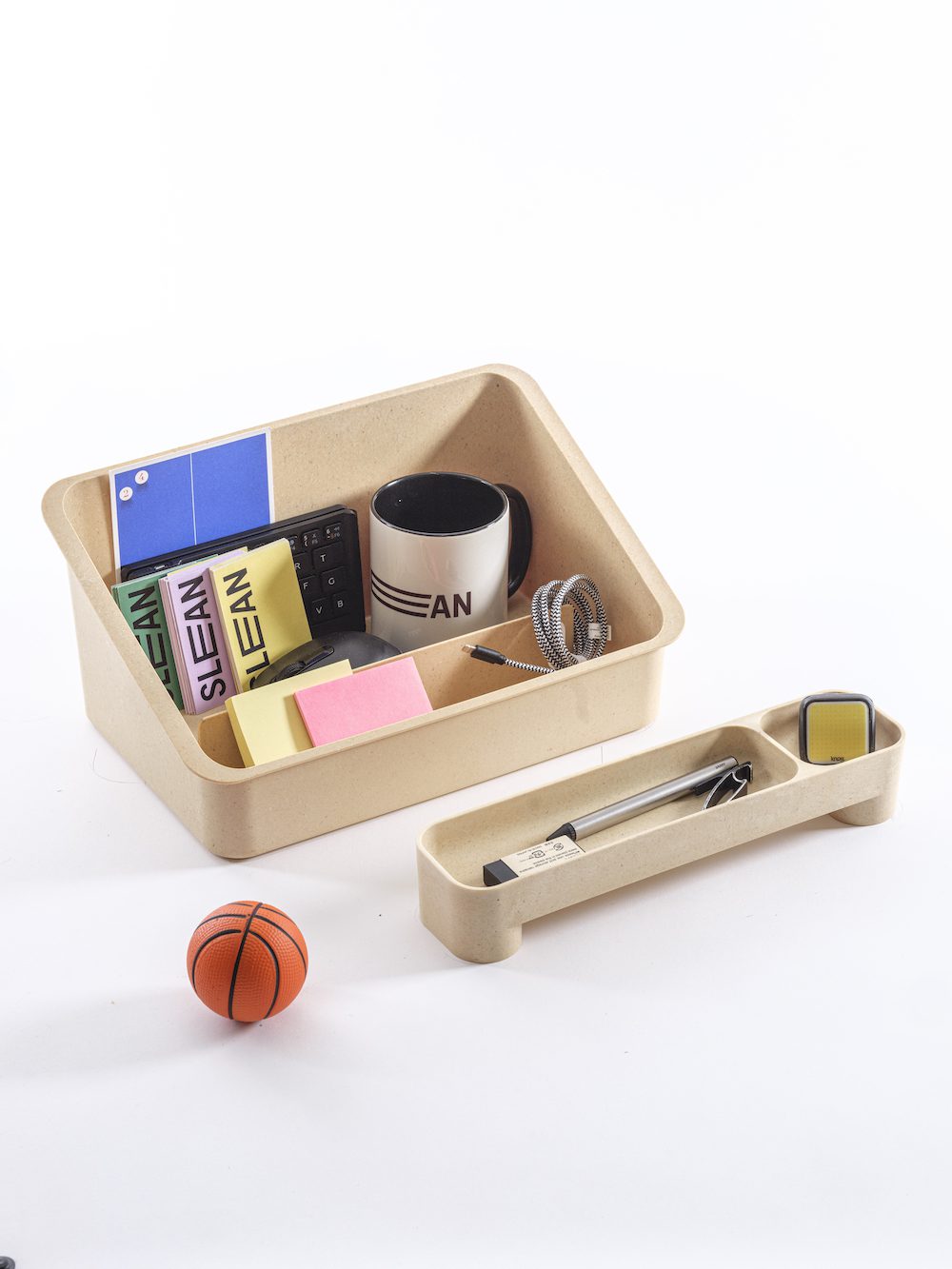 On aime l’idée de pouvoir embarquer « son bureau« , son pot à crayons et accessoires dans une box qui servira ensuite de rehausseur d’écran pour plus de confort à l’utilisation d’un ordinateur portable.