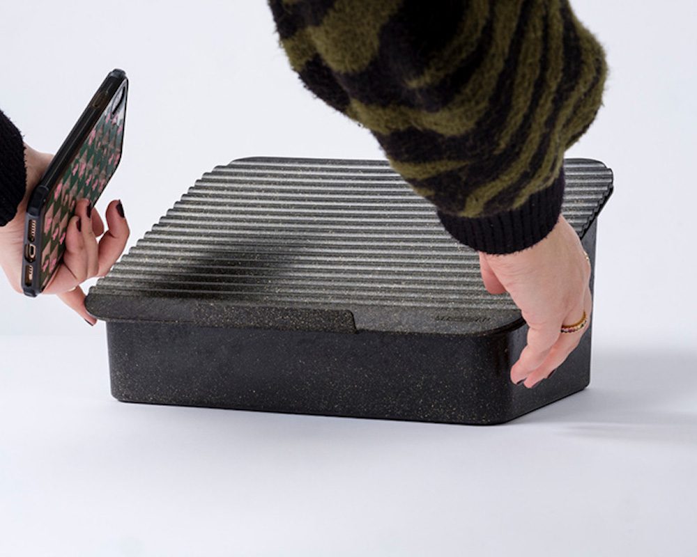 A noter que comme à son habitude, la marque imagine avant un objet made in France, fabriqué ici à base de plastique injecté sans pétrole provenant d’huile de friture recyclée et chargée de sciure de bois. Une plus matière propre pour une matérialité naturelle et un effet esthétique interessant.
