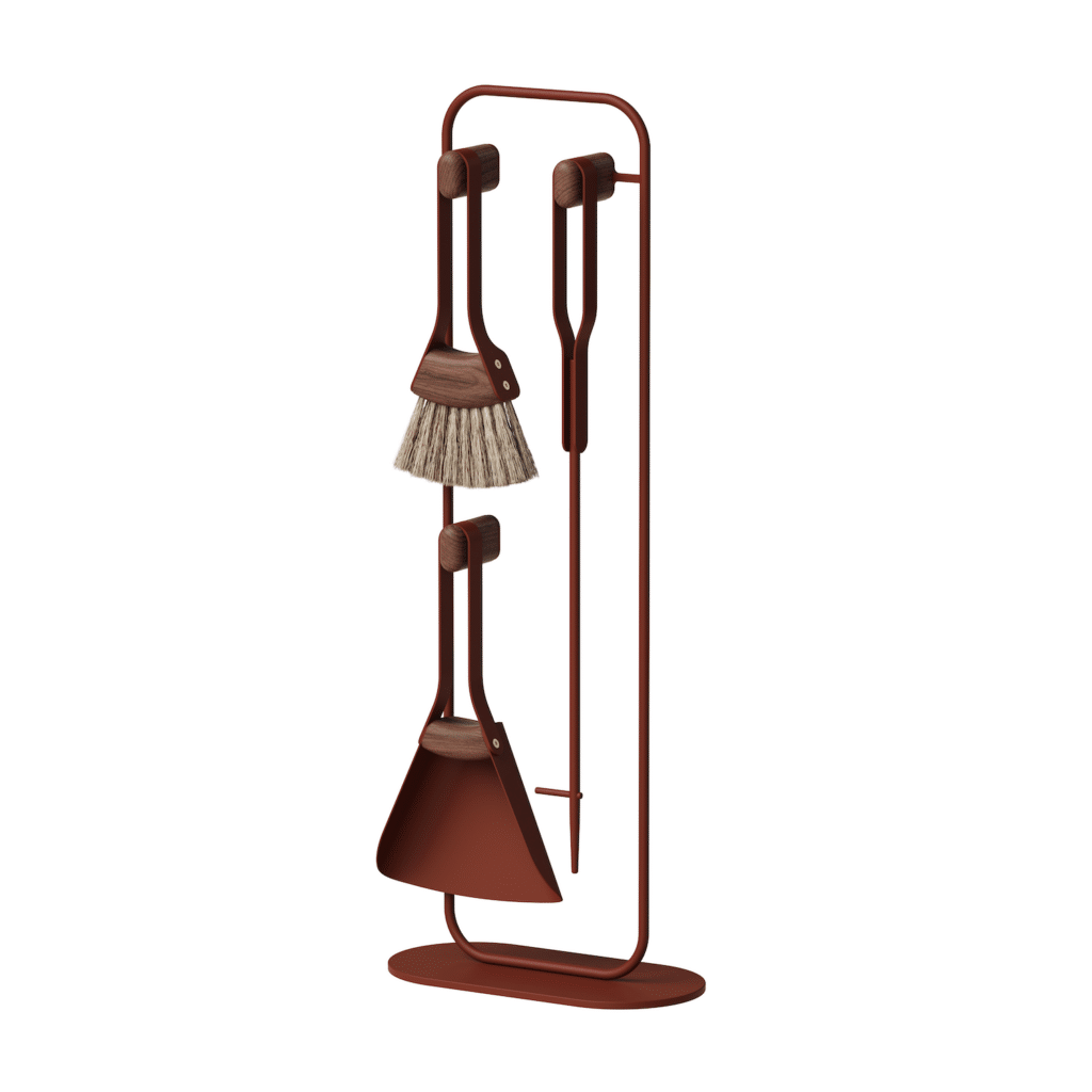 Chez Eldvarm, l’accessoire n’est jamais relégué au simple statut de fonction. La marque apporter une dimension esthétique et un respects des matériaux, ici nous allons retrouver une pelle, un tisonnier et une balayette qui s’inspirent des balais japonais à manche long. Le geste est sobre, les lignes sont épurées, le métal thermolaqué se déploie avec douceur, les courbes sont pleines, presque généreuses, et les vis volontairement apparentes viennent souligner un esprit de transparence revendiqué.