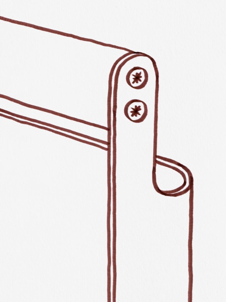 Le choix des matériaux est central dans cette collection. Le métal, plié et découpé avec précision, dialogue avec le bois de noyer ou de frêne selon les finitions. Les poignées comme les éléments d’accroche rappellent une exigence artisanale rare, où chaque détail semble pesé.
