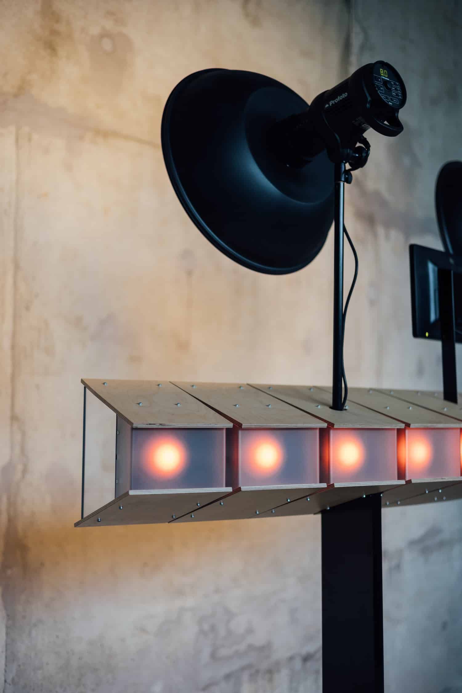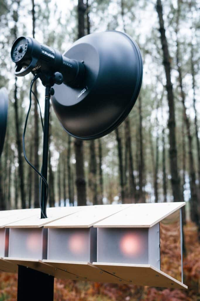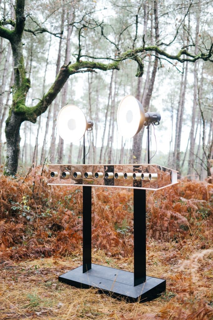 La matière est ici tout sauf secondaire, misant sur le contreplaqué de bouleau pour les coques supérieures et inférieures fait écho aux autres créations développées pour Wildstories. Il crée une continuité tactile et visuelle entre les différentes bornes photo. Ce bois clair, stable et nerveux, maîtrisé de longue date par Gaël Wuithier formé chez les Compagnons du Devoir devient un vecteur de précision autant que d’émotion.