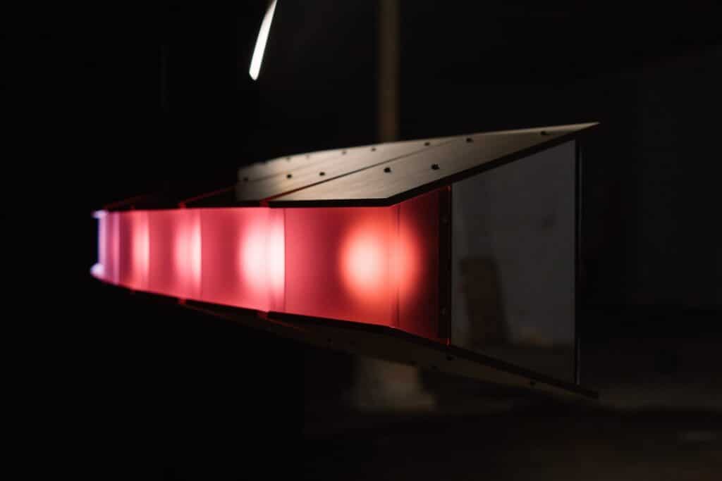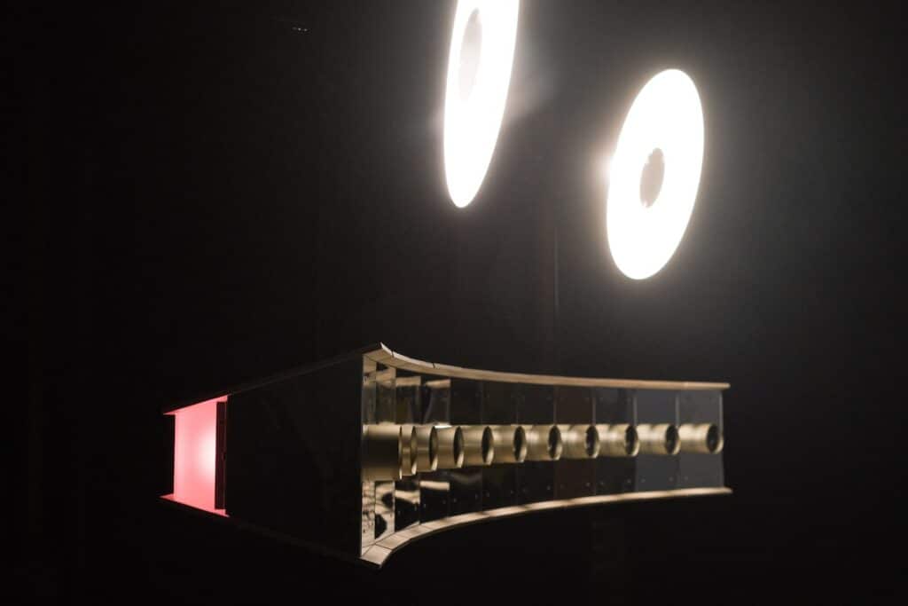 L’approche de Gaël Wuithier et Benoît Beaupuy s’illustre dans la manière d’intégrer les contraintes techniques comme moteurs esthétiques. L’alignement précis des onze objectifs, la convergence optique nécessaire, le rythme induit par les répétitions modulaires, tout cela trace naturellement un arc, une géométrie dynamique, presque aérienne, ou en provenance du dernier prototype automobile à la mode. La référence au vaisseau de Spielberg dans Rencontres du 3e type devient évidente. Ce n’est pas une imitation, c’est une interprétation libre, une manière de donner à voir l’invisible, cette énergie latente de la machine.