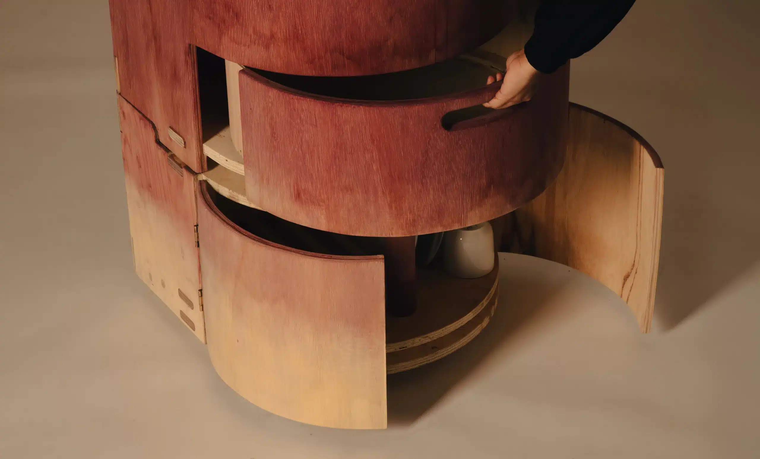- Kalasha : un récipient combiné de type vasque et filtreur d’eaux grises, inspiré des formes traditionnelles indiennes telles que le lota. Fabriqué en argile récupérée (notamment provenant de chantiers londoniens), avec un système de filtration mêlant céramique, charbon et granulés de liège, il permet de recycler de l’eau domestique non potable pour des usages secondaires.