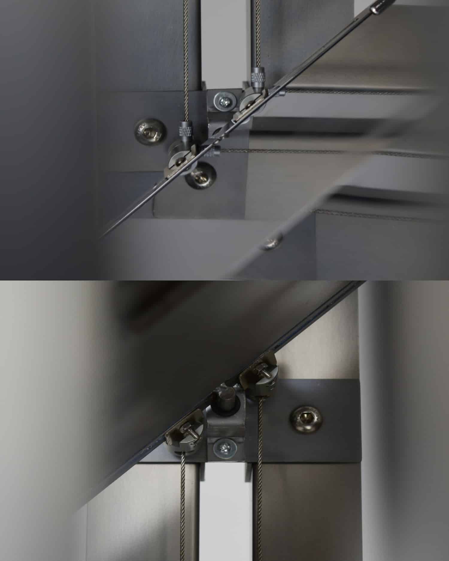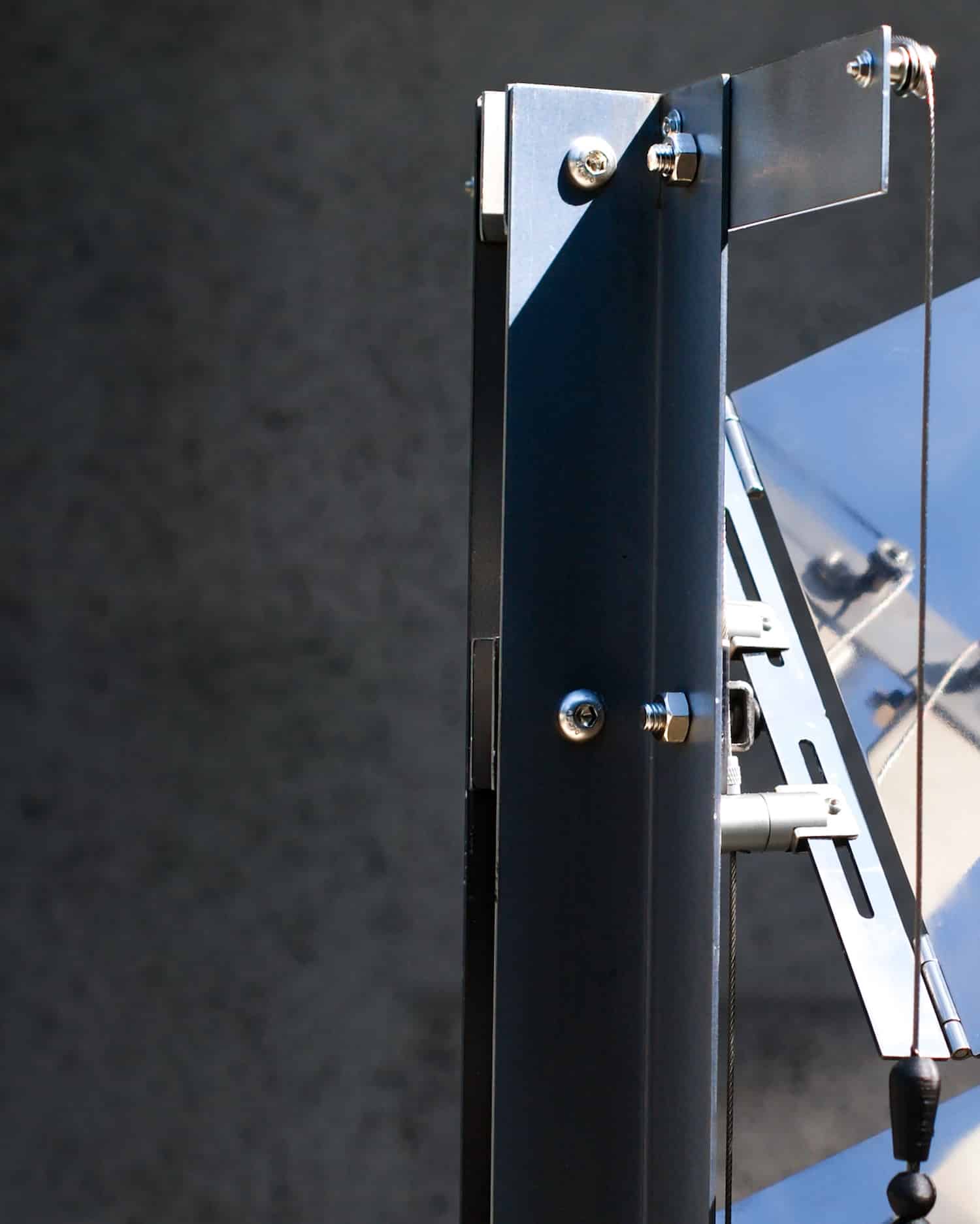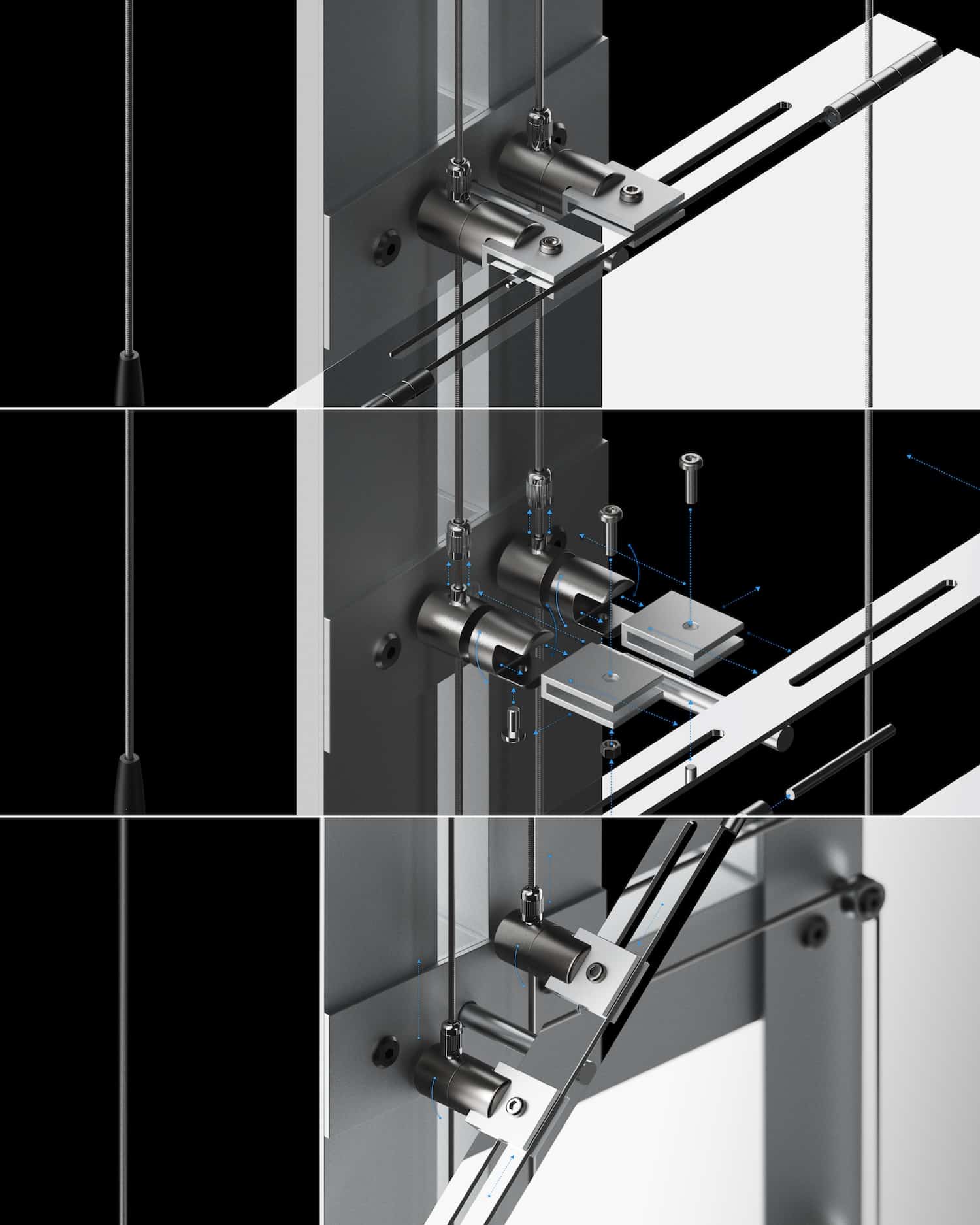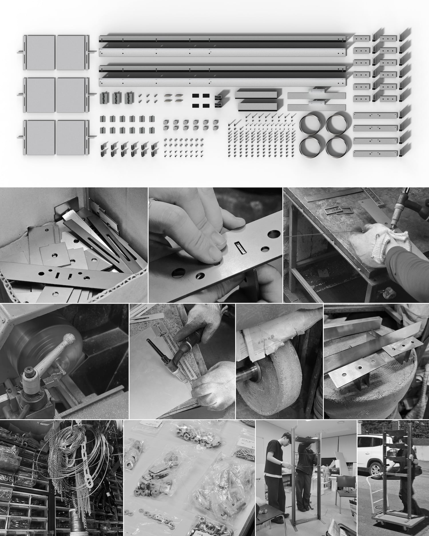 On aurait pu imaginer du bois, du textile, du polycarbonate comme le paravent Stick d’Extremis que nous avions présenté sur BED. Les designers font un choix différent : de l’acier laminé à froid, CR Steel, en 3 millimètres d’épaisseur, traité par thermolaquage (powder coating).