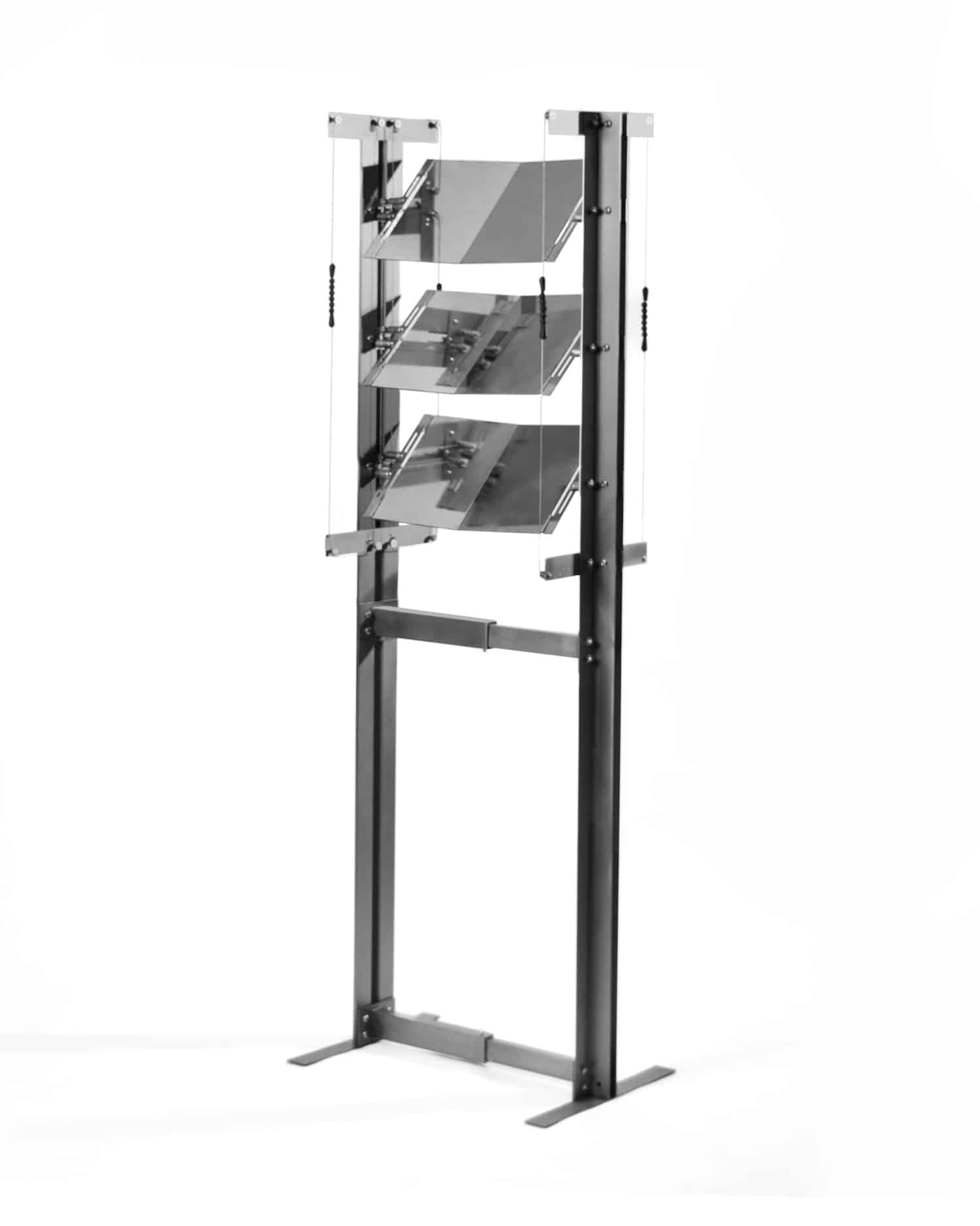 Elle est conçue pour tenir debout sans fixation murale, grâce à une structure de répartition des charges. Autrement dit, pas de perçage, pas de chevilles, pas de contrainte liée au propriétaire ou au bail. On la pose, on l’oriente, on la déplace.