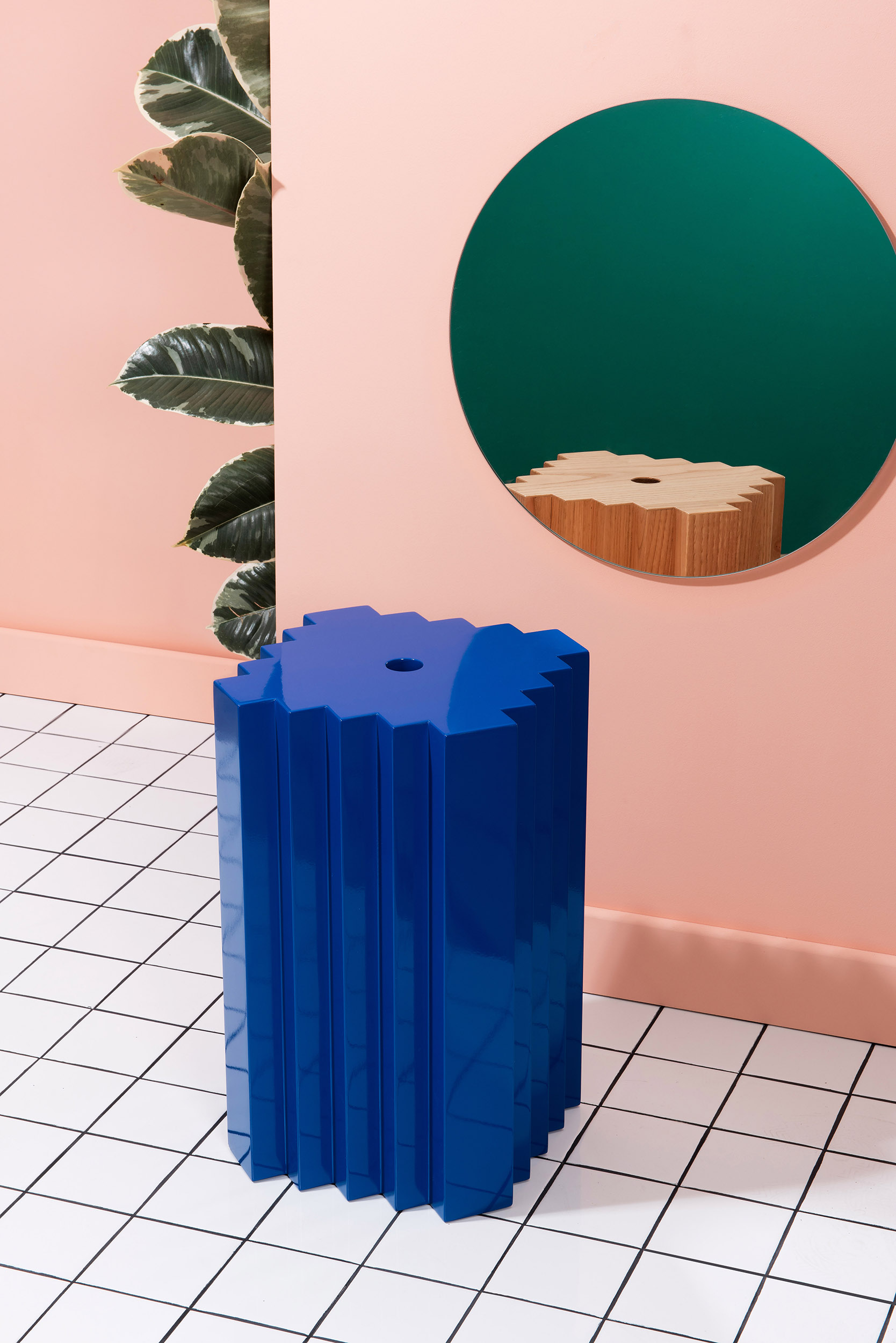 Designer aux origines libanaises installé en France, Charles Kalpakian mêle dans ses créations de mobilier ou ses interventions d’architecture d’intérieur ces deux influences. Avec Aztek, son dernier projet, il livre son interprétation du bout de canapé, en faisant un objet coloré et aux contours crénelés.