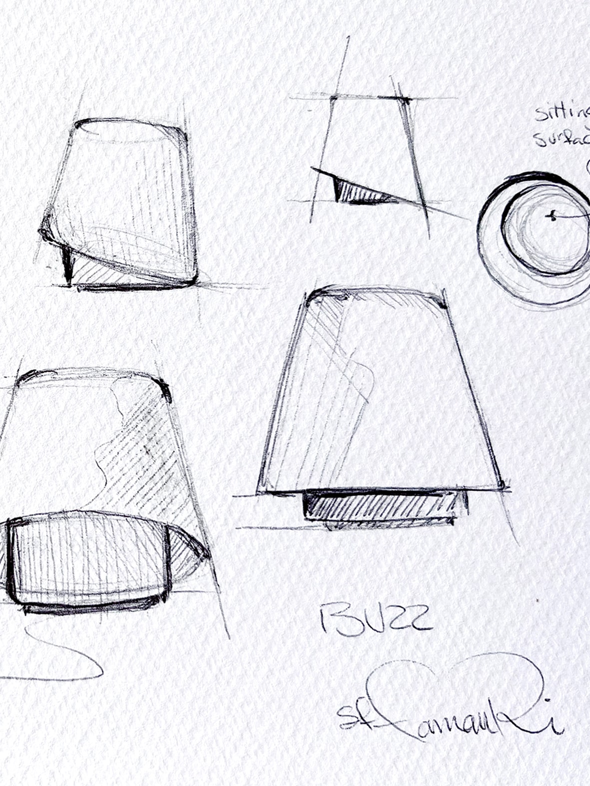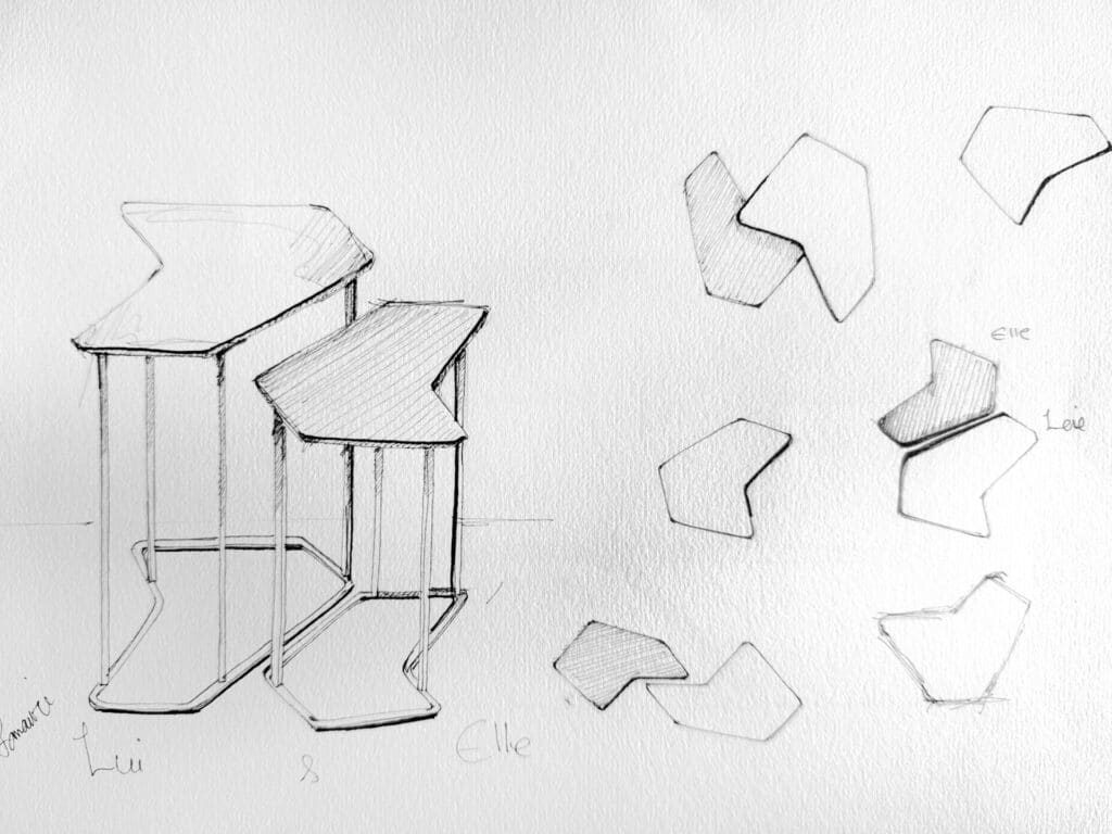 Mon processus démarre toujours par une multitude de croquis et d’esquisses. Puis, progressivement, un ou deux concepts émergent, s’imposent par leur évidence. C’est alors le temps d’affiner, de pousser plus loin : explorer les axes esthétiques, pratiques et techniques, jusqu’à donner vie à une création à la fois cohérente, fonctionnelle et porteuse de sens. En somme, concevoir, c’est tracer un pont entre l’invisible et le tangible, entre l’idée et l’expérience, pour créer des pièces capables de raconter une histoire et de résonner durablement »
