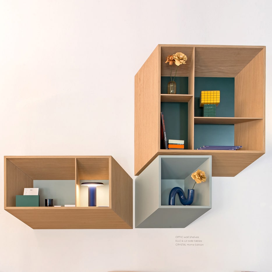 - Optic : une collection d’étagères murales modulaires, aux structures fines qui misent sur la légèreté visuelle.