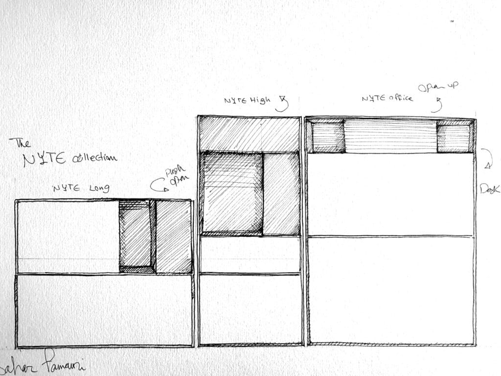 - Nyte : des meubles de rangement (bureaux, modules hauts, bas) articulés autour d’une modularité pragmatique.