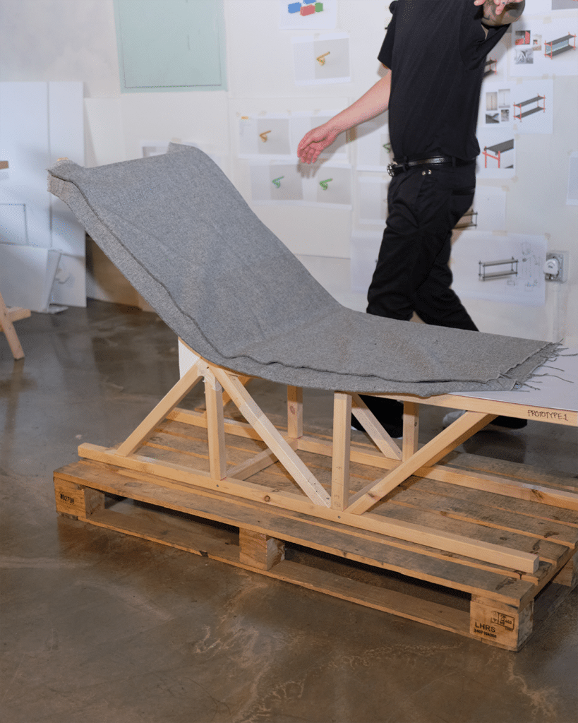 Si la chaise Gang séduit par sa dimension conceptuelle, elle ne néglige pas pour autant l’usage. La partie couchage peut accueillir un matelas amovible, apportant une touche douce, chaleureuse et humaine à cette sculpture fonctionnelle. Ce détail, discret mais essentiel, permet à l’utilisateur de s’approprier la pièce, de l’adapter à son espace, à son confort, à son quotidien.