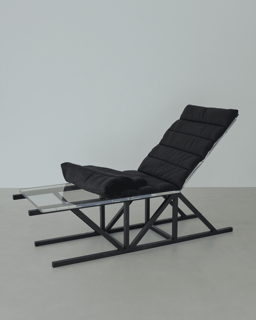L’une des signatures fortes de la chaise Gang réside dans ses surfaces d’assise et de couchage, réalisées en plastique transparent. Ce choix audacieux met à nu l’ossature en bois, sans la dissimuler sous un habillage superflu. La structure devient alors visible sous tous les angles, donnant à la pièce un caractère presque muséal, comme si l’on observait le squelette d’une idée en train de naître.