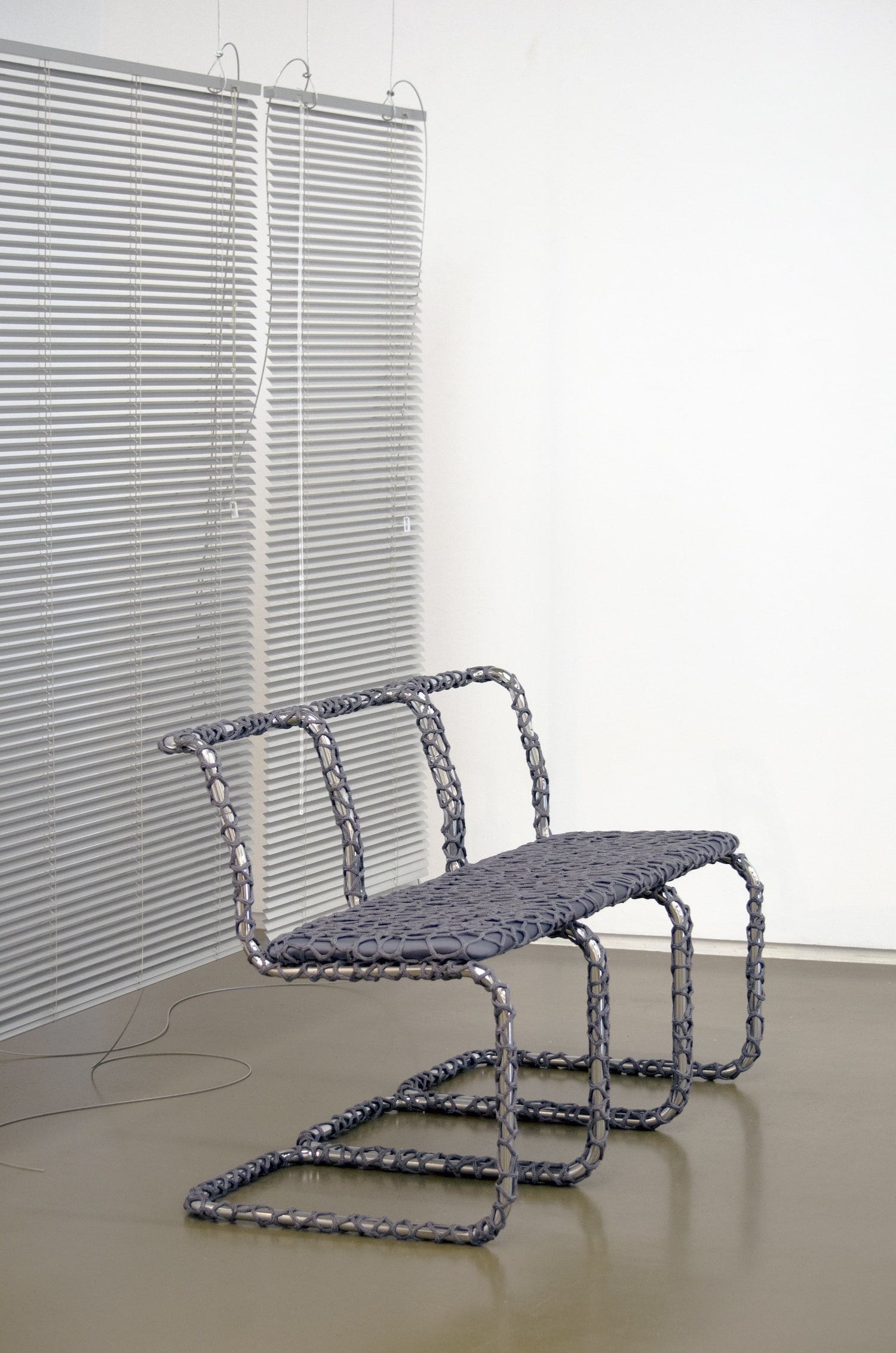 Armatures tubulaires chromées et corde : un dialogue de matières