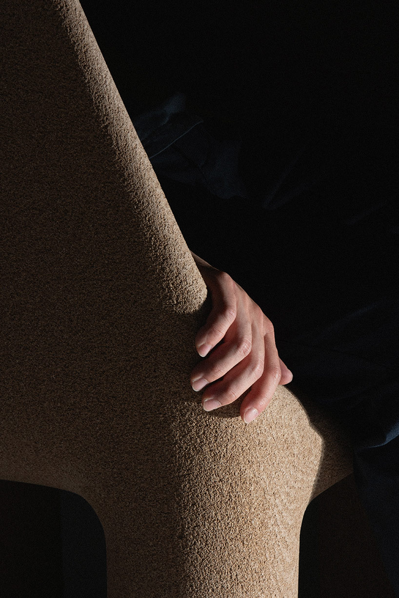 Cette approche rappelle les recherches de la suédoise Hanna Carlsson autour de sa Residue Chair, qui travaillait elle aussi à partir de déchets de bois liés par des matières naturelles pour questionner ce que l’industrie du meuble laisse derrière elle. L’idée de partir du rebut pour faire quelque chose qui dure est aussi au coeur du travail de Renga, même si les procédés divergent : là où Carlsson mousse et presse, Renga extrude et stratifie.