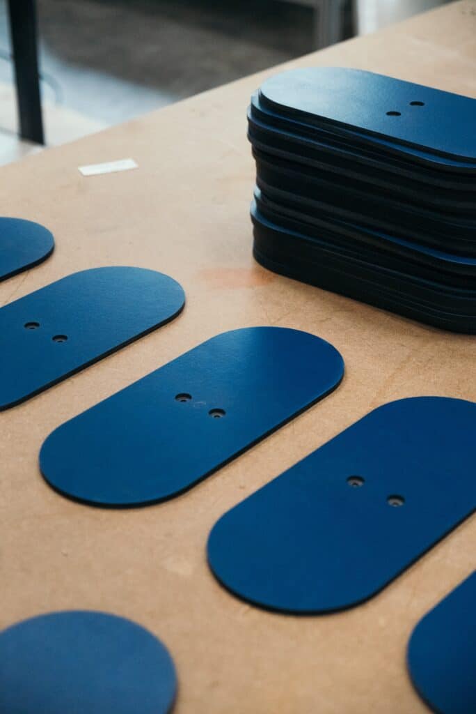 Pour trouver ces matériaux, l’équipe contactait jusqu’ici des industriels de son réseau mais se trouve de plus en plus sollicitée par les partenaires. On cherche des chutes assez standards pour garder une production industrielle. Il faut aussi que les matériaux soient solides, compatibles intérieur/extérieur et facilement usinables. Le sourcing reste volontairement court et exclusivement en Europe.