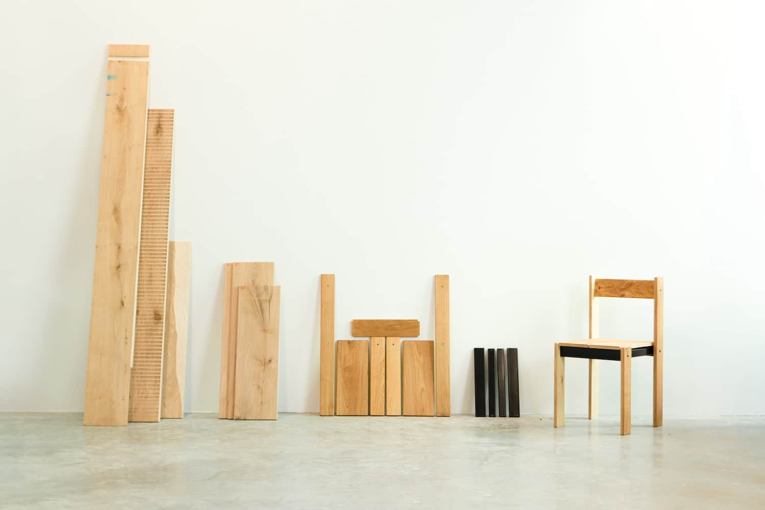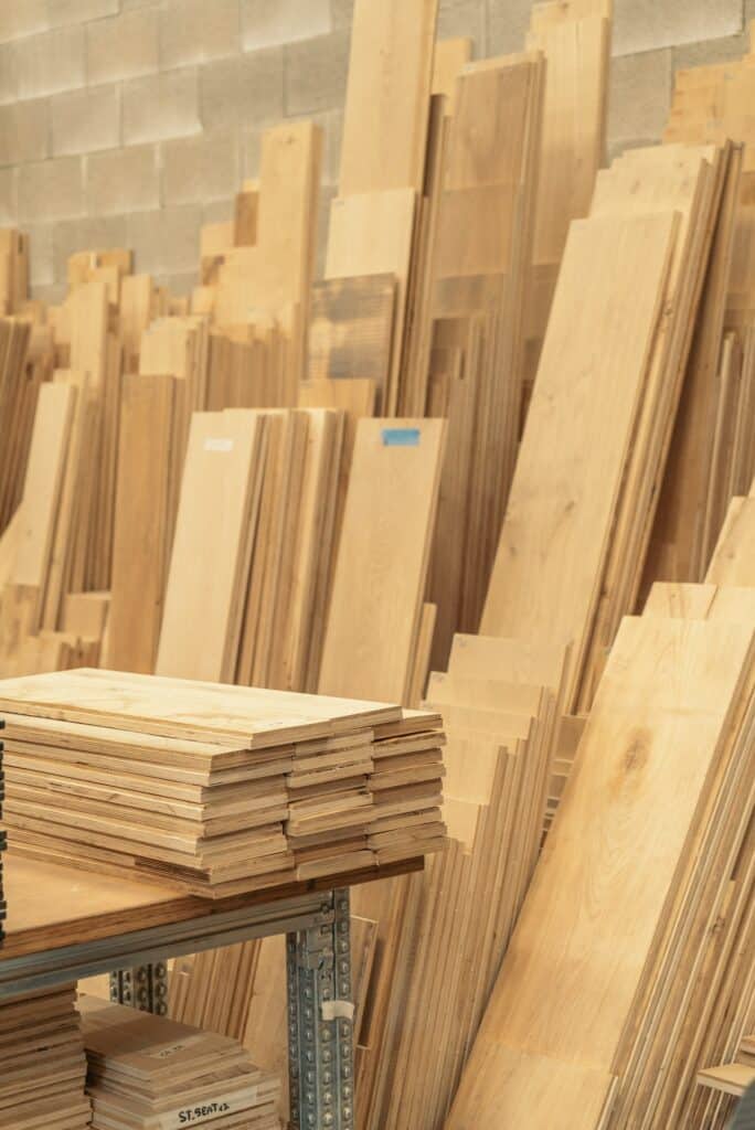 Le premier gisement marquant de Duplex a été celui des chutes de parquet : 4 000 mètres linéaires récupérés en fin de ligne pour lancer une première collection. Un flux aujourd’hui voué à disparaître : l’industriel a revu sa ligne de production et sa gestion des déchets, ce qui met fin à l’approvisionnement. La collection va s’arrêter mais le design peut facilement coller à un autre type de matériau. On va sûrement le réinventer dans une nouvelle finition. Le design perdure, les matériaux évoluent.