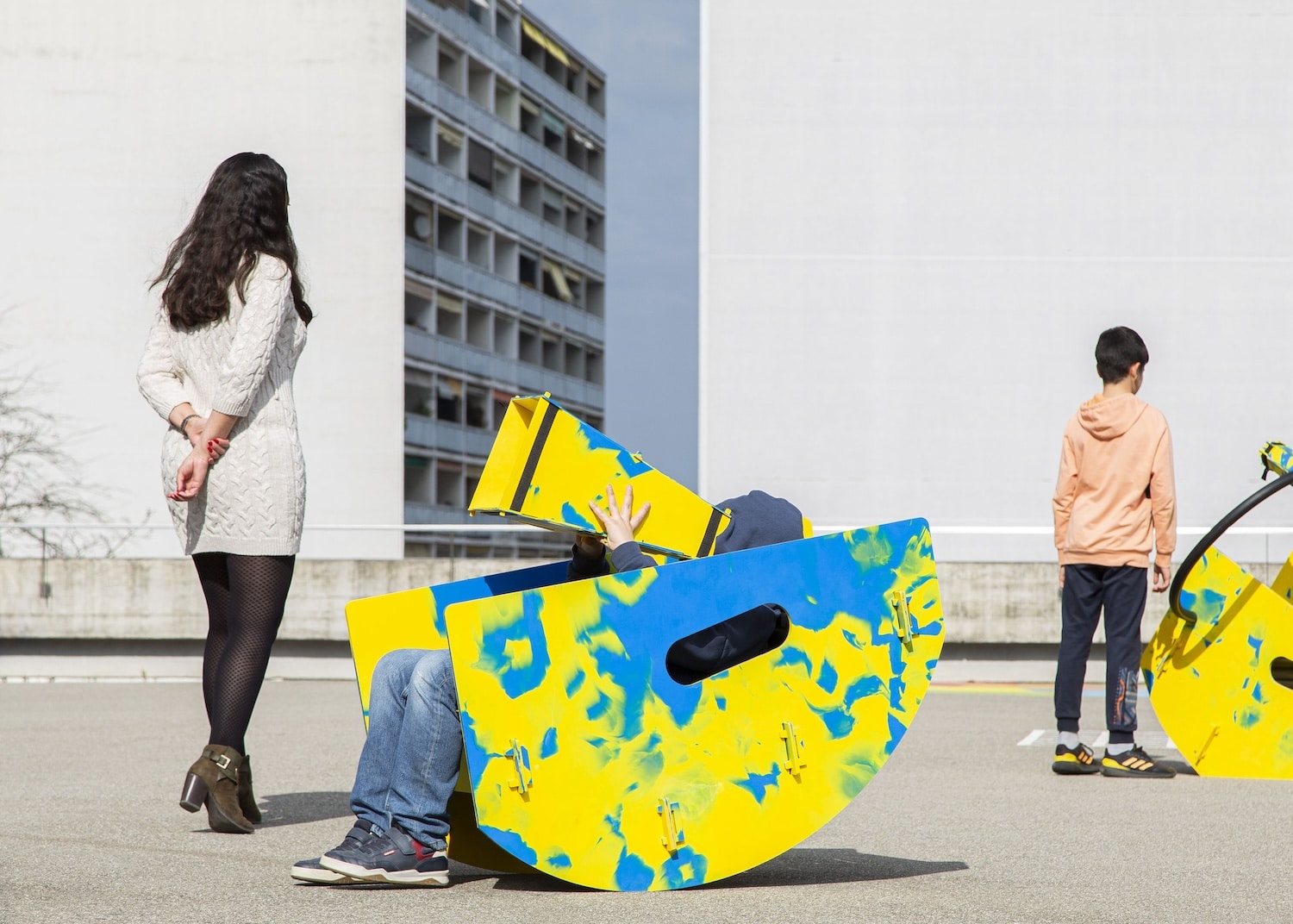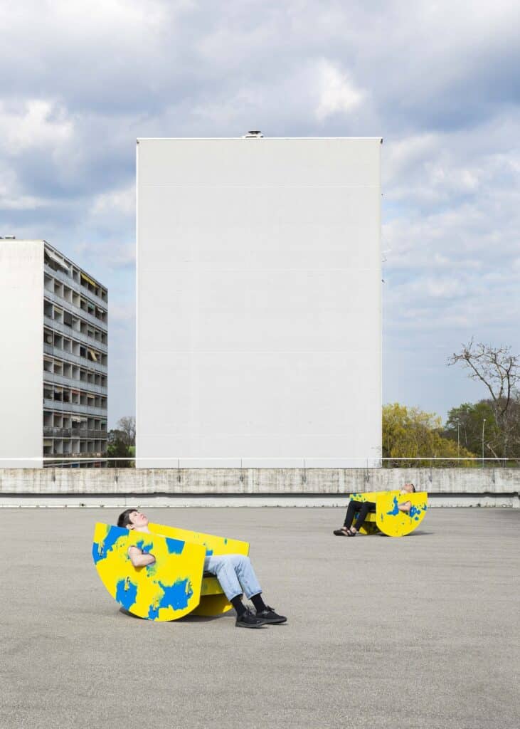 À l’initiative du Forum Meyrin, ce dispositif est né d’un dialogue avec les enfants de la commune, invités à partager leurs rêves de nuages. Laurine et Olivier ont ainsi imaginé plusieurs assises d’observation, pensées pour être utilisées à la fois dans l’espace public et en milieu scolaire.