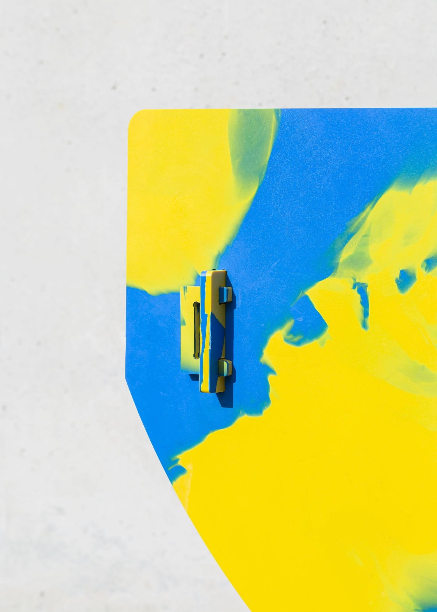 - Les panneaux plastiques, fournis par Glitter, sont réalisés à partir de chutes d’imprimerie, sélectionnées pour leur teinte puis usinées chez On’lfait après une formation à la fraiseuse numérique.