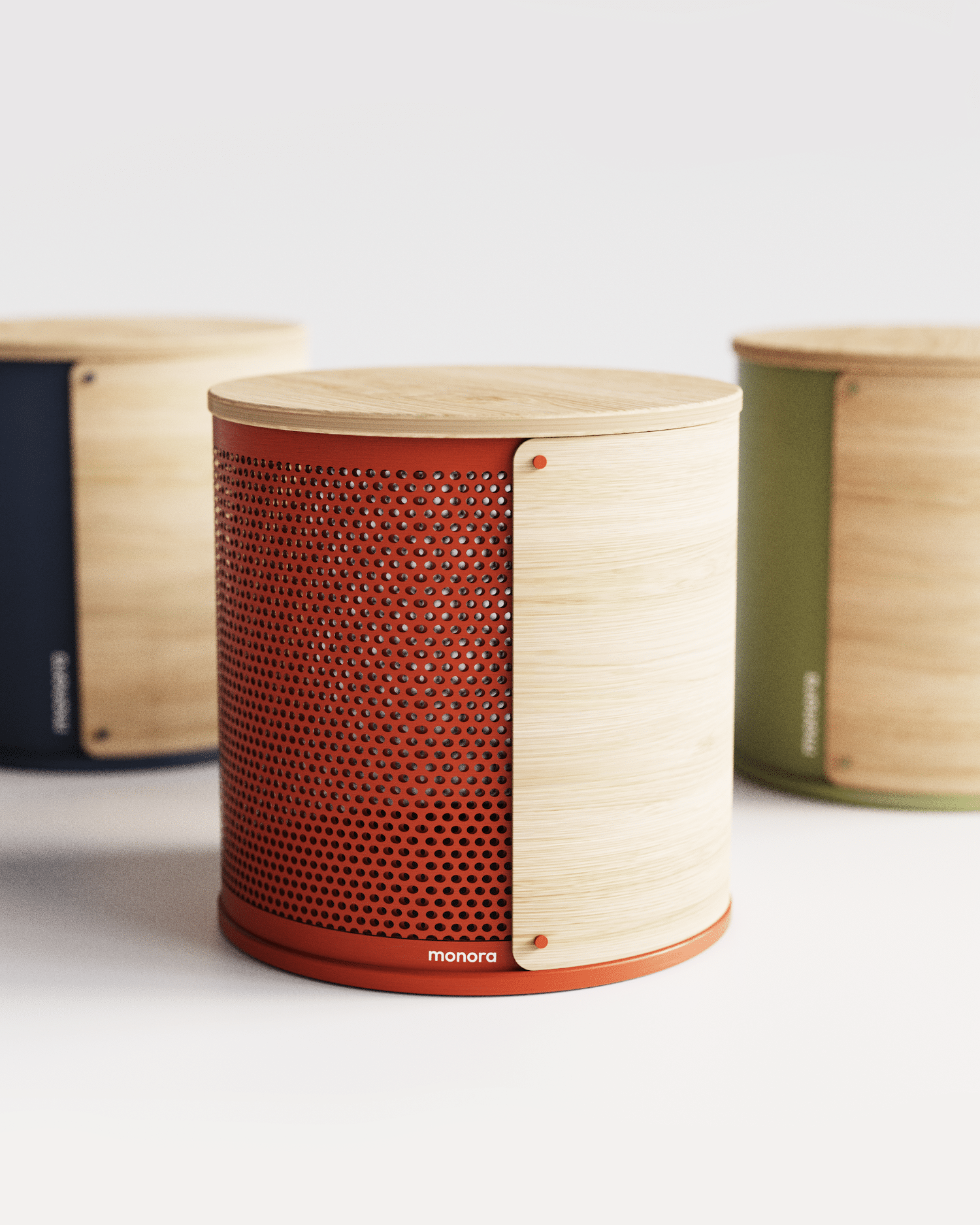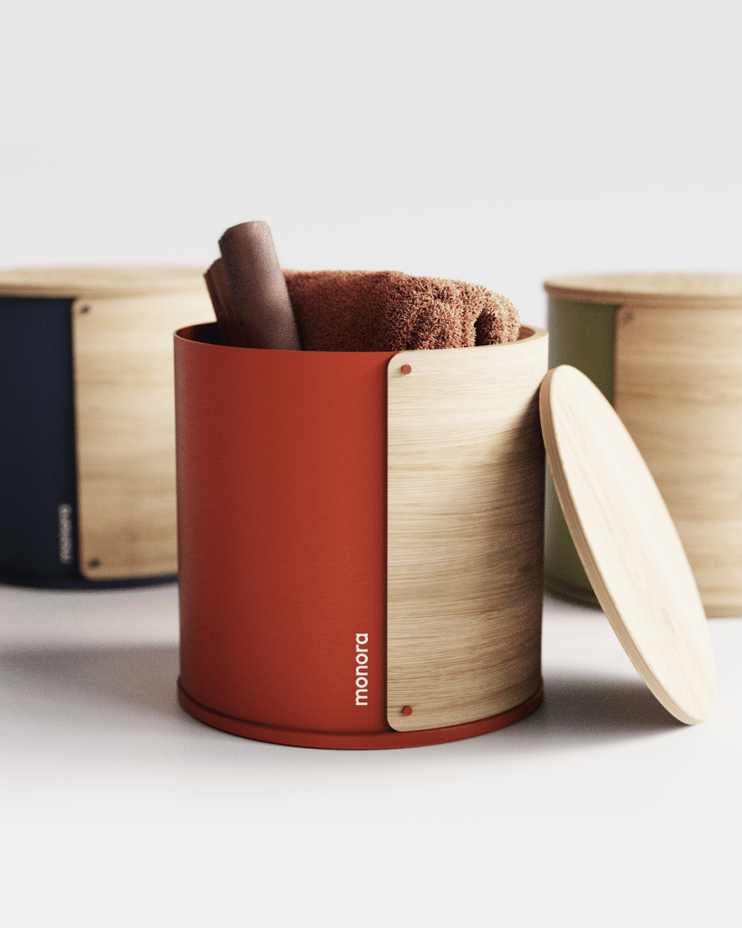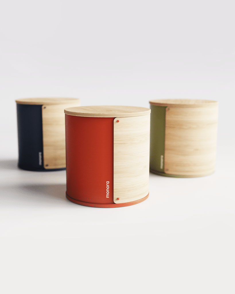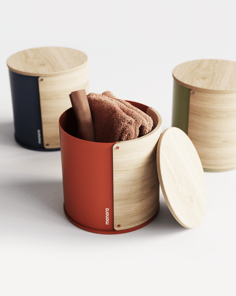 Autre déclinaison de la série : le Monora Storage Stool 🌿, un tabouret de rangement pensé dans une même logique de forme et de matériau.