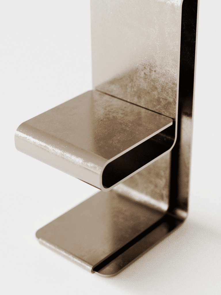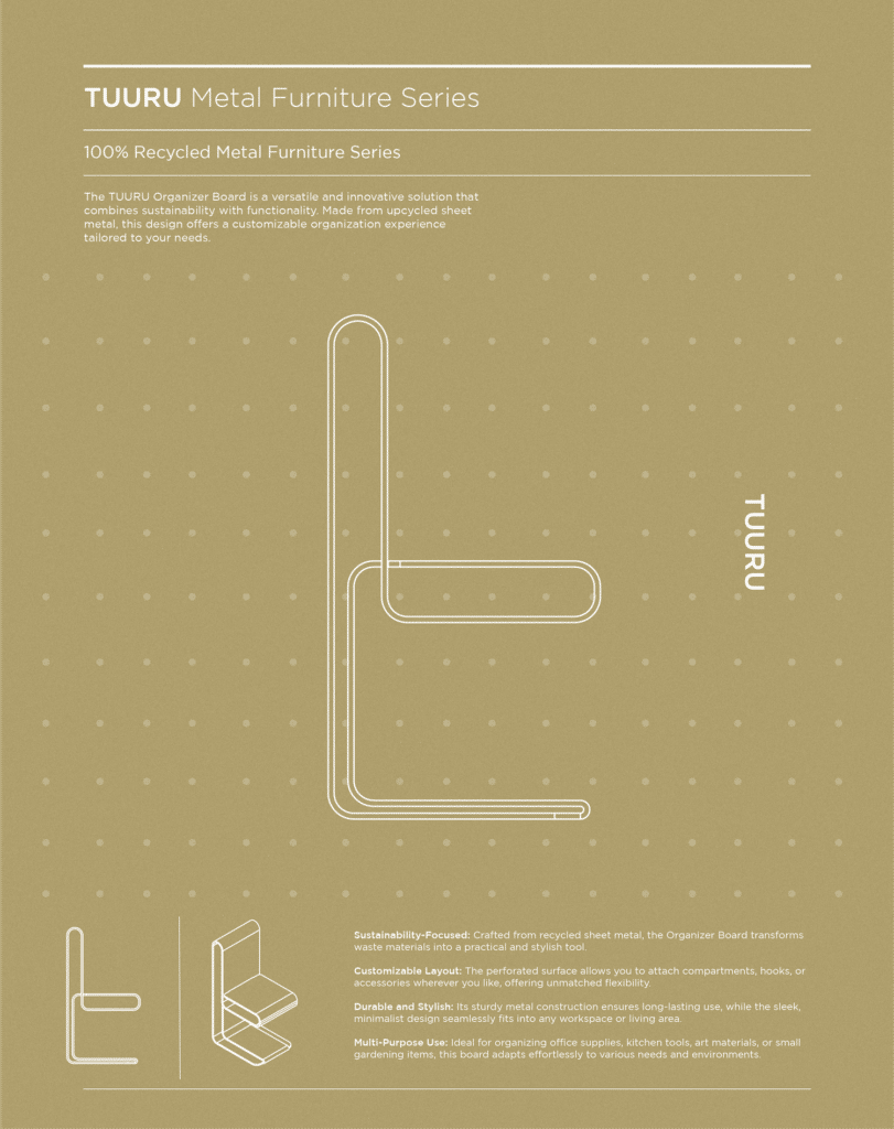 L’histoire commence avec Tuuru, première collection fondatrice du designer, élaborée à partir de tôle recyclée. Cette matière, souvent perçue comme brute et impersonnelle, est ici détournée pour révéler son potentiel expressif. Traces, imperfections, oxydations deviennent des marqueurs d’authenticité. Depuis cette première série, le métal s’est imposé comme le fil conducteur d’un langage formel qui interroge notre rapport à l’objet, à la matière et à la temporalité.
