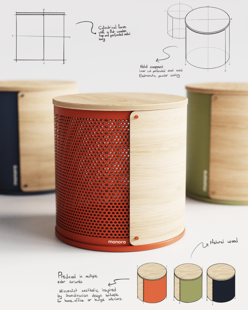C’est l’ambition que poursuit la jeune designeuse turque Gokce Nafak avec Monora, un projet ancré dans une approche du design où la matière guide la forme, et non l’inverse. Dans cette nouvelle série, la designeuse explore une esthétique épurée mêlant tôle perforée, bois naturel et système modulaire, dans un langage coloré pensé pour des usages multiples.
