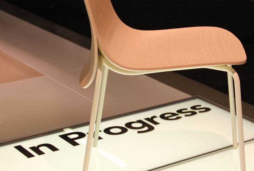Des chaises nous renvoyant à des modèles traditionnelles, mais améliorées, telle sa précédente création, Hanger Chair, où un léger décalage de dossier change le profil et fonction de l’assise.