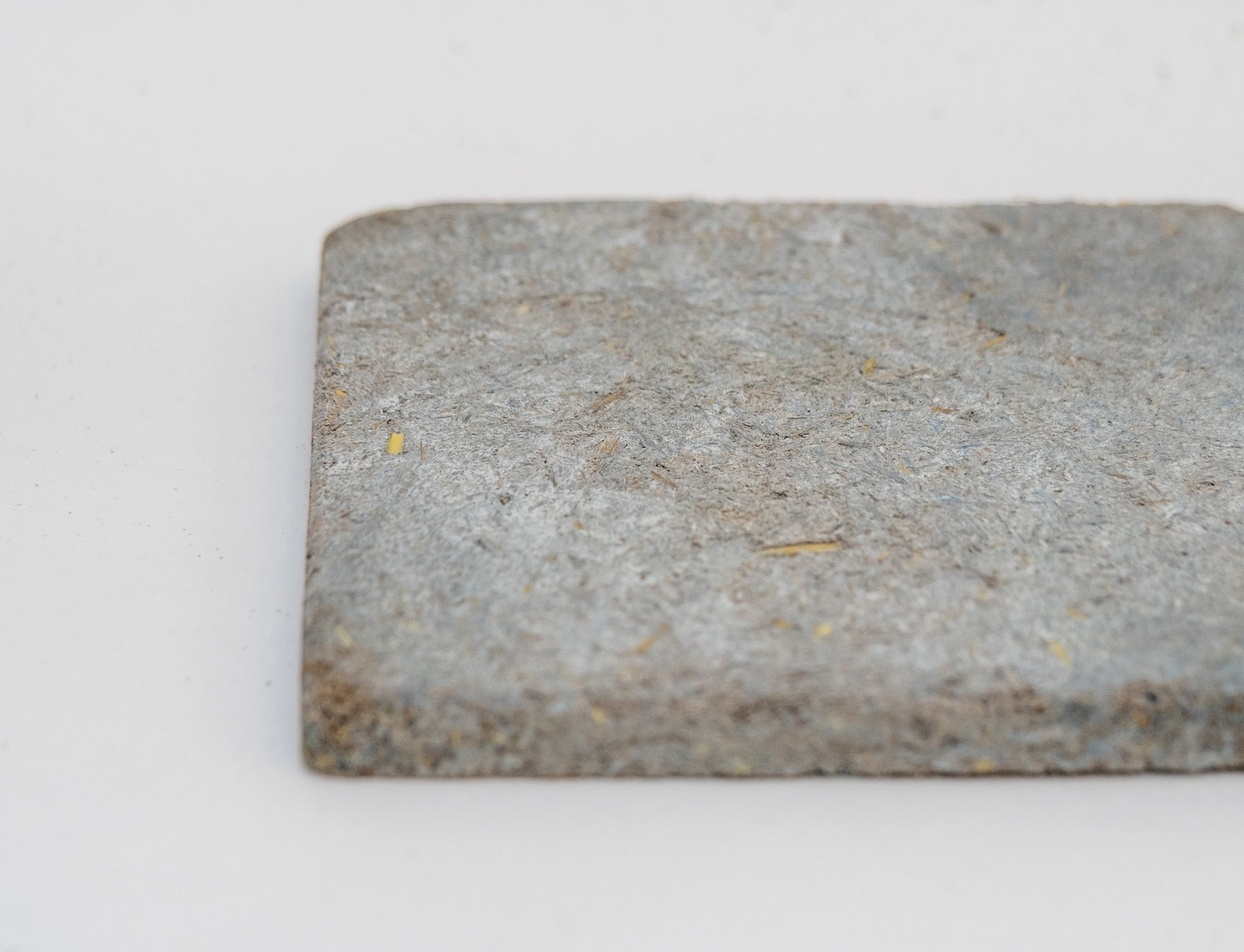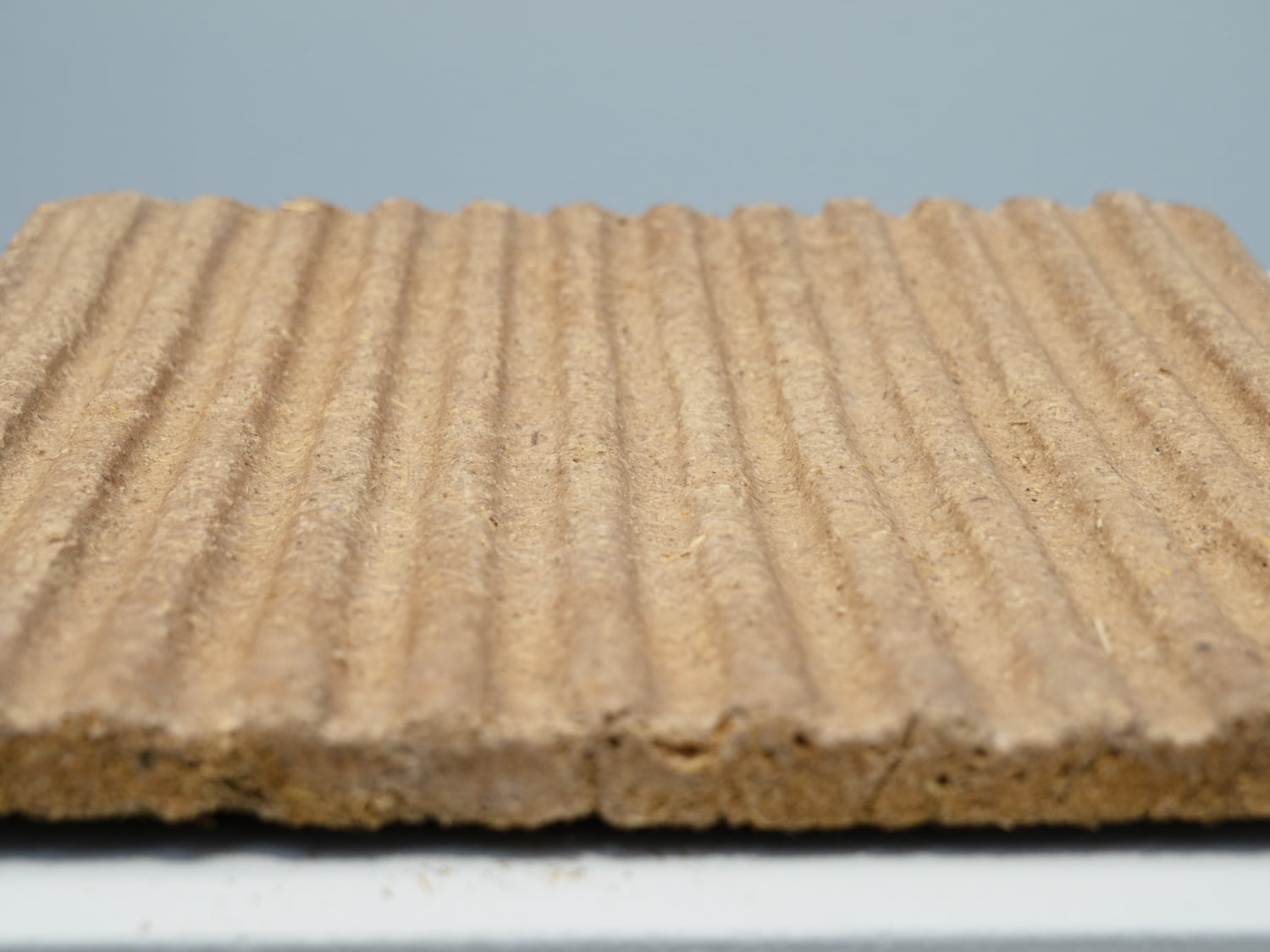 Le liant utilisé est la caséine, une protéine naturelle extraite du lait, connue depuis des siècles pour ses propriétés adhésives et qui bénéficie d’une regain d’intérêt dans la recherche matériaux contemporaine. L’ensemble constitue une alternative sans toxines et biodégradable au MDF conventionnel, ce panneau omniprésent dans l’industrie du meuble mais dont la fabrication mobilise des résines formaldéhydes aux impacts sanitaires et environnementaux néfastes.