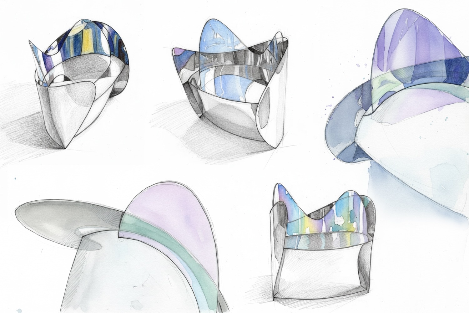 Ce qui mérite attention dans la démarche d’ODA LIK, c’est que le processus de conception intègre la matière dès le départ. Les croquis initiaux ne sont pas de simples études : ils posent les relations entre courbes, reflets, couleurs et perception. La forme et le matériau co-évoluent. Cette approche est assez rare pour être soulignée elle suppose une connaissance fine des comportements du verre dichroïque et de l’acier selon les conditions d’éclairage, et une capacité à anticiper des effets optiques qui ne se révèlent pleinement que dans l’espace réel.