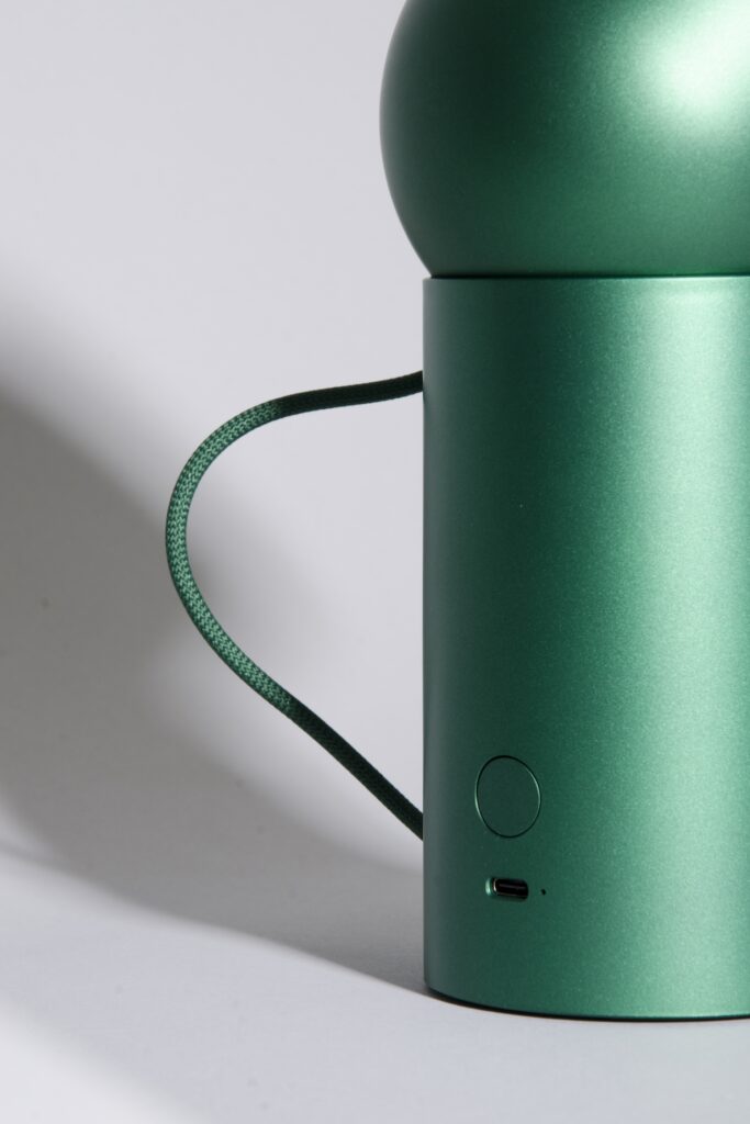 Sa silhouette sphérique, posée sur une base aimantée, invite à l’interaction. L’utilisateur peut orienter la tête lumineuse comme il le souhaite, moduler son intensité, changer la couleur des LED, ou tout simplement l’allumer d’un geste. Tel un personnage, affectueux que nous aimons retrouver et qui peut nous accompagner dans nos moments de calmes en intérieur.