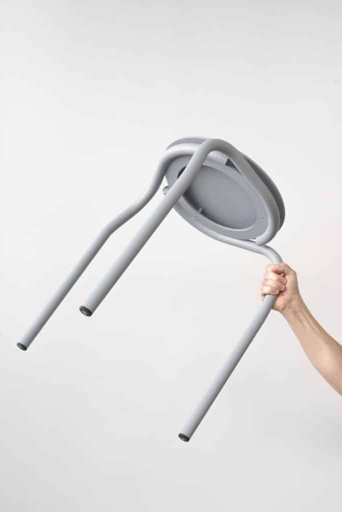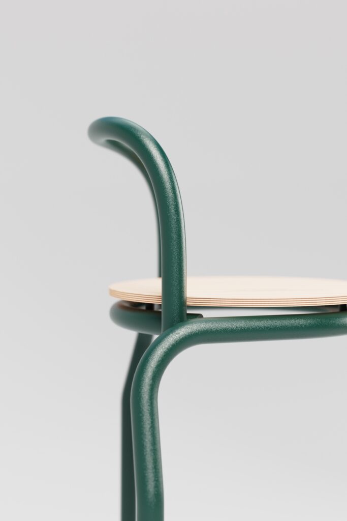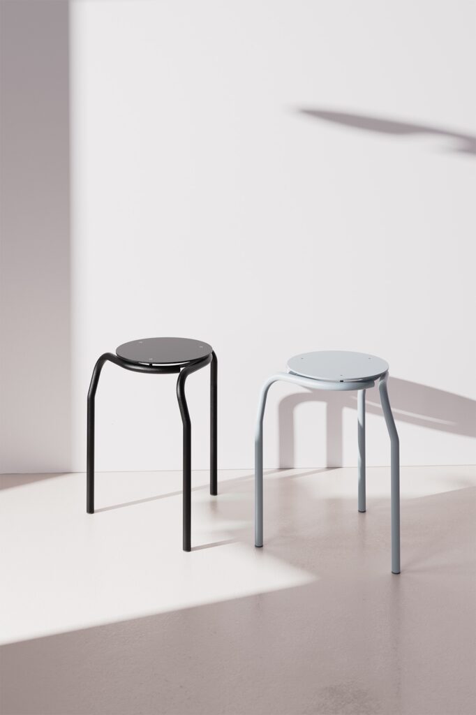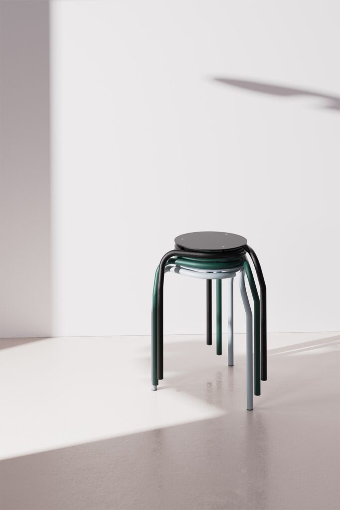 Les courbes tubulaires dessinent une assise stable, robuste et élégante. Composé de seulement trois pièces mécaniquement assemblées, S-Tool réussit à concilier simplicité structurelle et richesse formelle. Son architecture asymétrique rompt avec les codes classiques du mobilier et lui permet d’être stocké verticalement avec un encombrement minimal, favorisant un usage flexible en intérieur comme en extérieur.