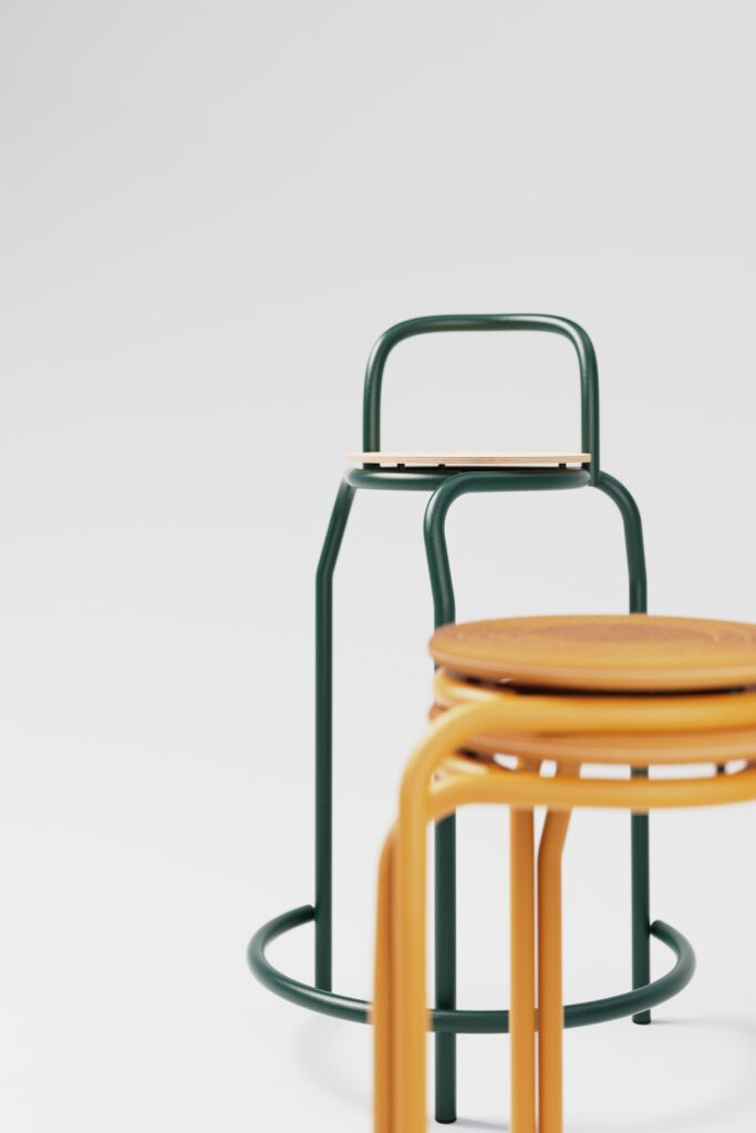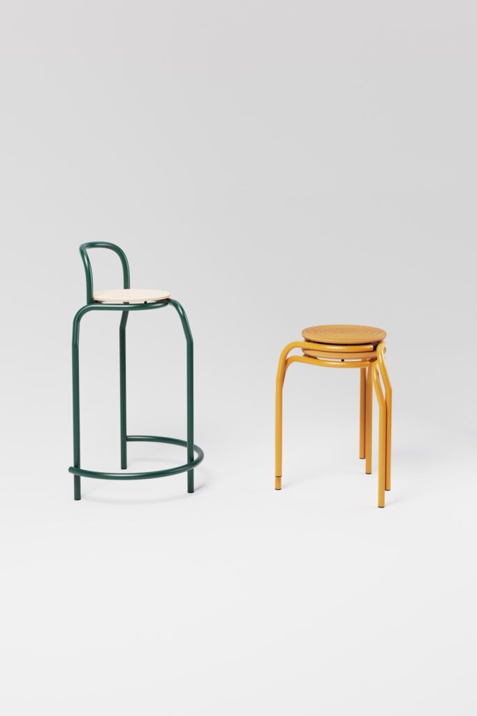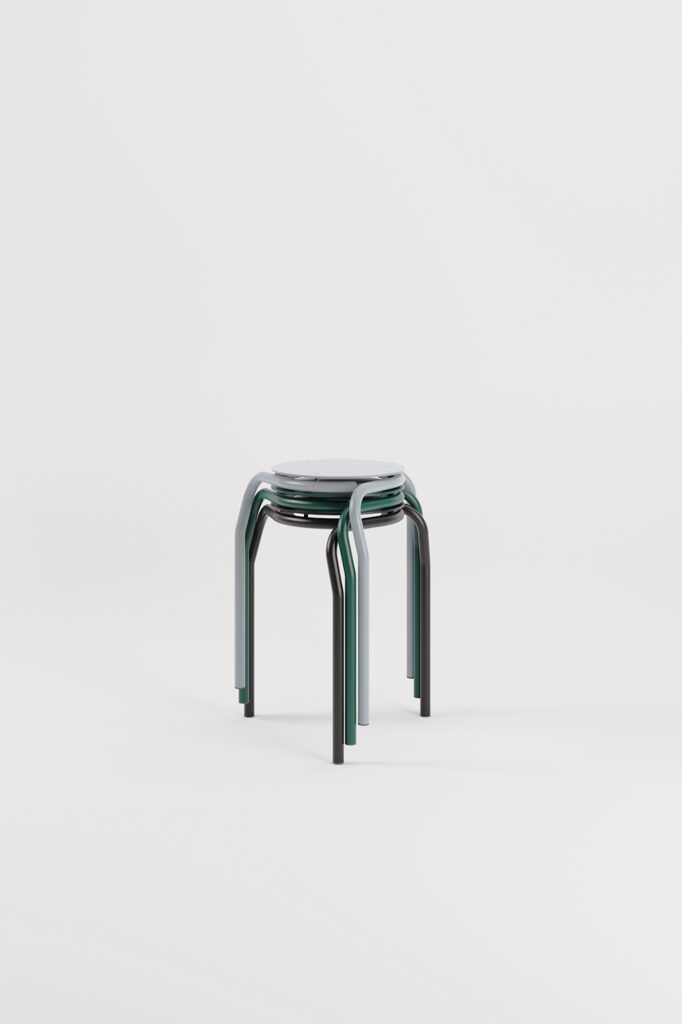 Disponible en plusieurs hauteurs (tabouret classique et version bar), il s’intègre aussi bien dans un environnement domestique qu’au sein d’espaces collectifs. Son design empilable répond aux exigences actuelles de modularité, tout en affirmant une personnalité visuelle marquée.