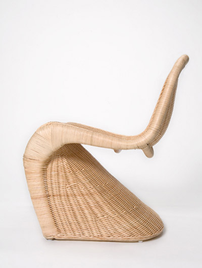 On prend la matière acier filaire (en échos à notre article d’hier) chez Bertoia que l’on adapte au « S » de la Panton afin de créer une œuvre unique et originale.