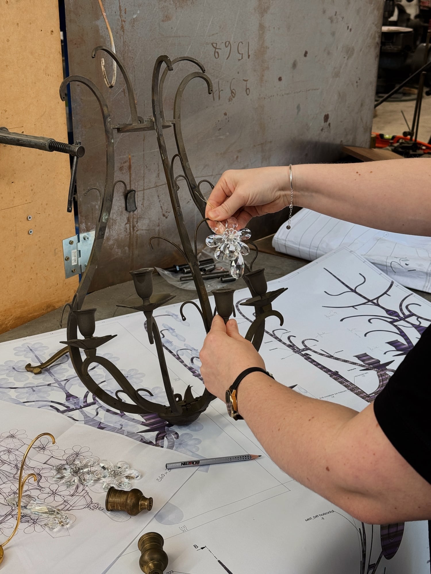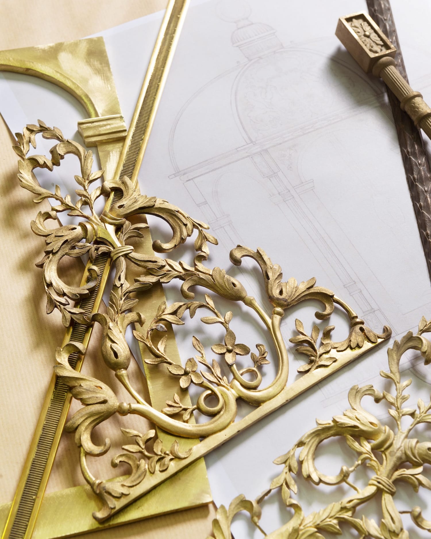 J’ai fait beaucoup de projets en bronzerie d’art mais je ne peux pas les dévoiler au public car nos clients sont très discrets. En ce moment, je revisite une applique de style Louis XV en dorure et cristaux pour la collection Delisle.