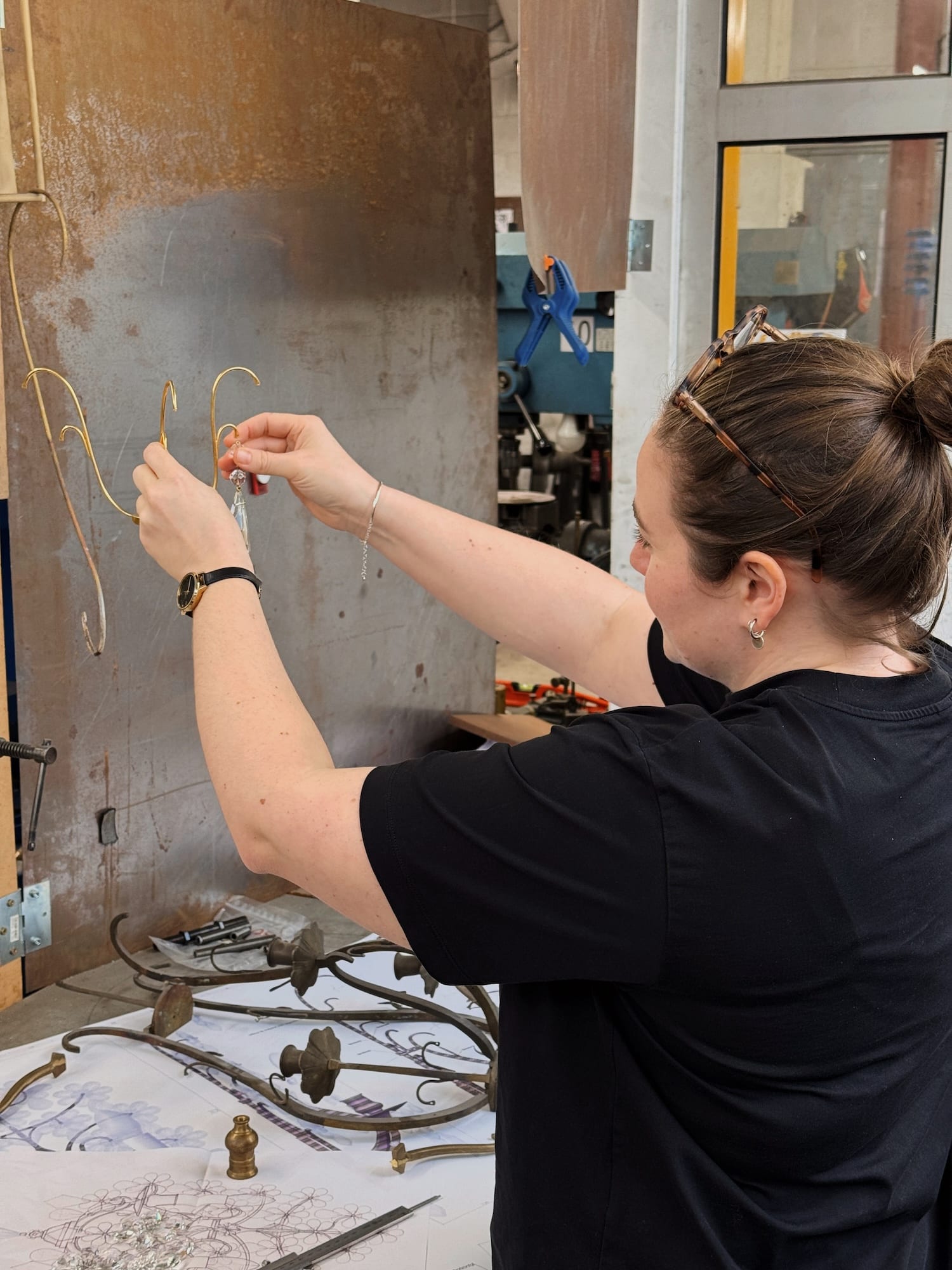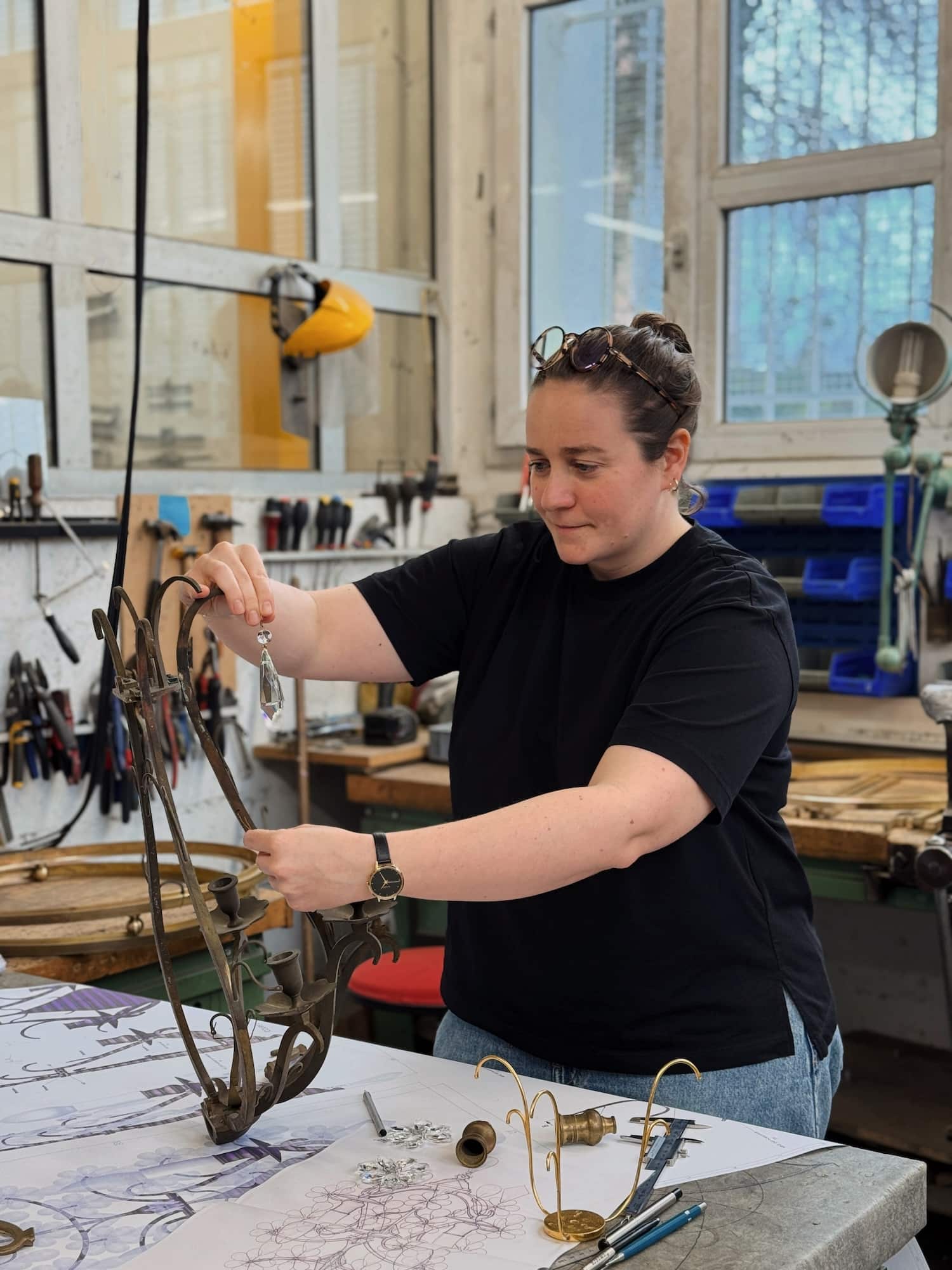 Le monde de l’artisanat m’a trouvé par hasard mais j’ai toujours eu une attirance pour ce domaine. On m’a contactée pour devenir ingénieure designer chez Rémy Garnier, une bronzerie d’art réputée dans le domaine de la quincaillerie décorative et le luminaire. C’est là que j’ai eu la chance de rencontrer de nombreux artisans, notamment Laurent Duhoux, monteur-ingénieur-dessinateur dans le métier depuis 40 ans.