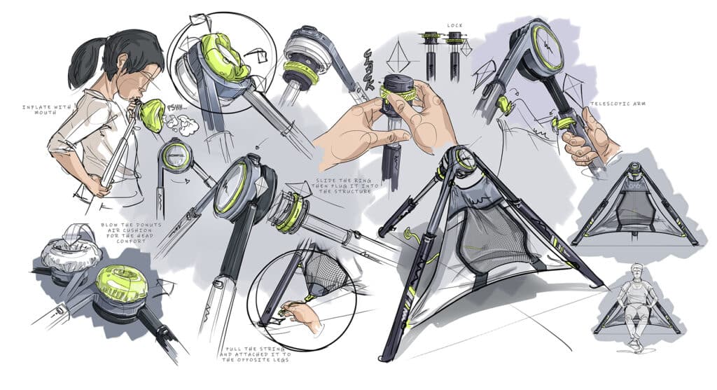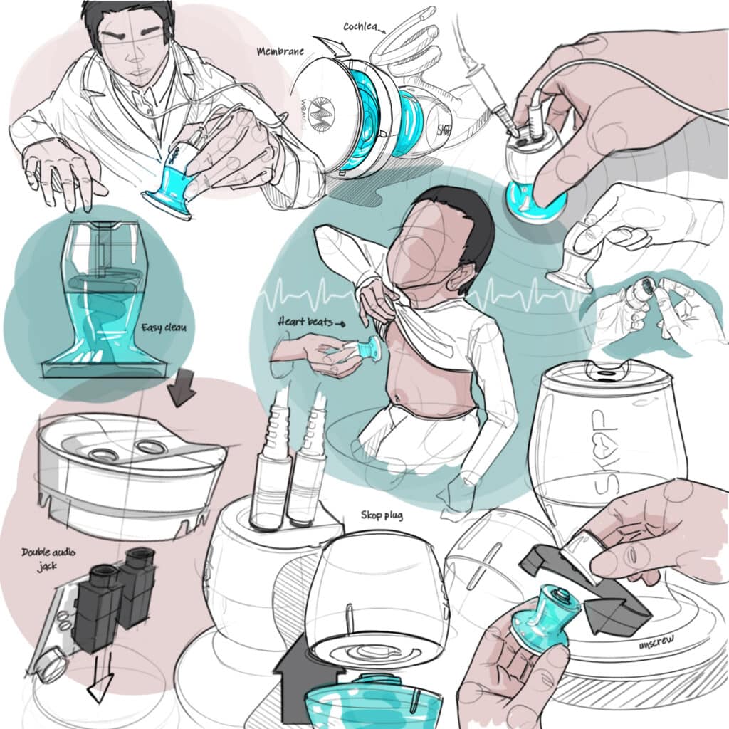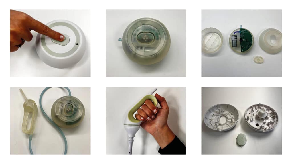 L’enjeu était de concevoir un produit cohérent avec ses contextes d’usage réels, à l’hôpital ou au cabinet médical comme au domicile des patients, en intégrant très concrètement les questions de manipulation, de nettoyage et d’hygiène, de rangement, … En parallèle, nous avons cherché à traduire, par le design du dispositif, le caractère radical de cette innovation, sans entrer en rupture avec les codes rassurants attendus dans le domaine médical et tout en conservant des coûts de production réalistes pour une start-up. Le développement mécanique du produit a été mené dans cette logique d’ajustement permanent entre usage, technologie et industrialisation.