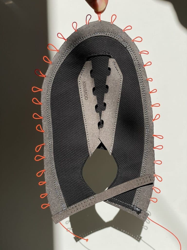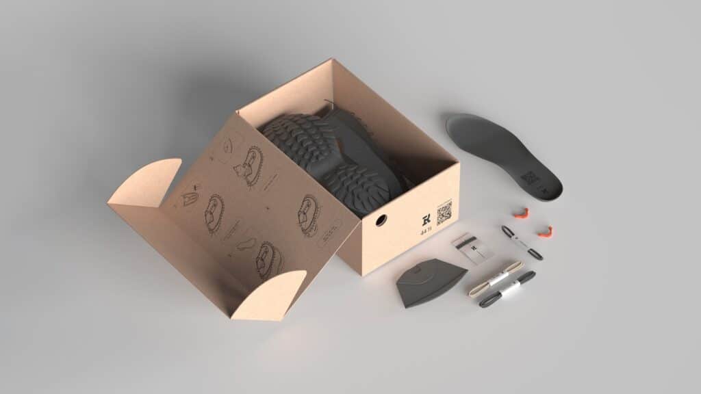 L’assemblage final est confié à l’utilisateur : le kit comprend la semelle imprimée, les composants textiles découpés, les lacets et les instructions. Cette démarche renforce le lien entre la personne et l’objet, facilitant une meilleure compréhension de sa construction et donc de sa réparation future. Elle répond également à une tendance émergente du design qui valorise l’implication de l’utilisateur dans la fabrication, créant ainsi une relation plus durable à l’objet.