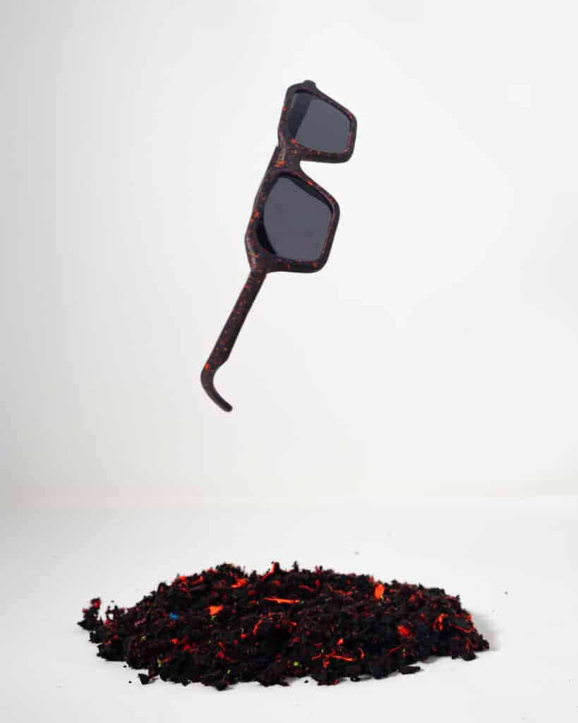 La fabrication des lunettes s’apparente à un travail d’orfèvre, chaque composant est découpé avec précision grâce à un usinage CNC haute technologie, avant un ponçage manuel qui garantit une surface lisse et un confort optimal. Les verres certifiés CAT 3 UV 400, disponibles en option polarisée, complètent ces montures artisanales. Le résultat ? Des lunettes résistantes à l’eau, durables, et dont les coloris et motifs proviennent directement des designs originaux des combinaisons recyclées. Chaque paire devient ainsi véritablement unique, portant en elle les traces chromatiques de son existence antérieure.