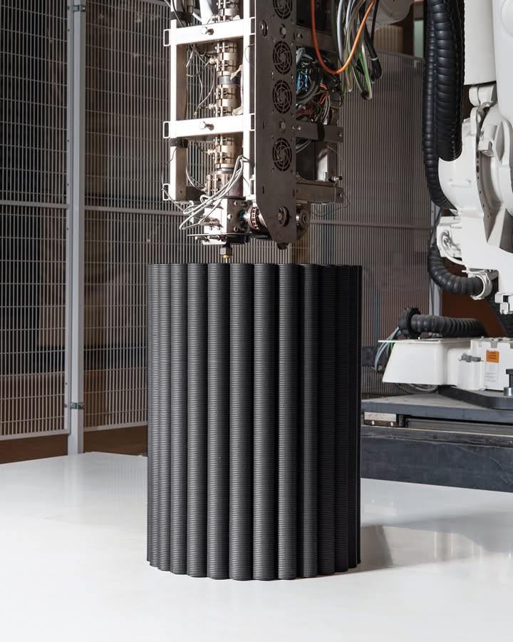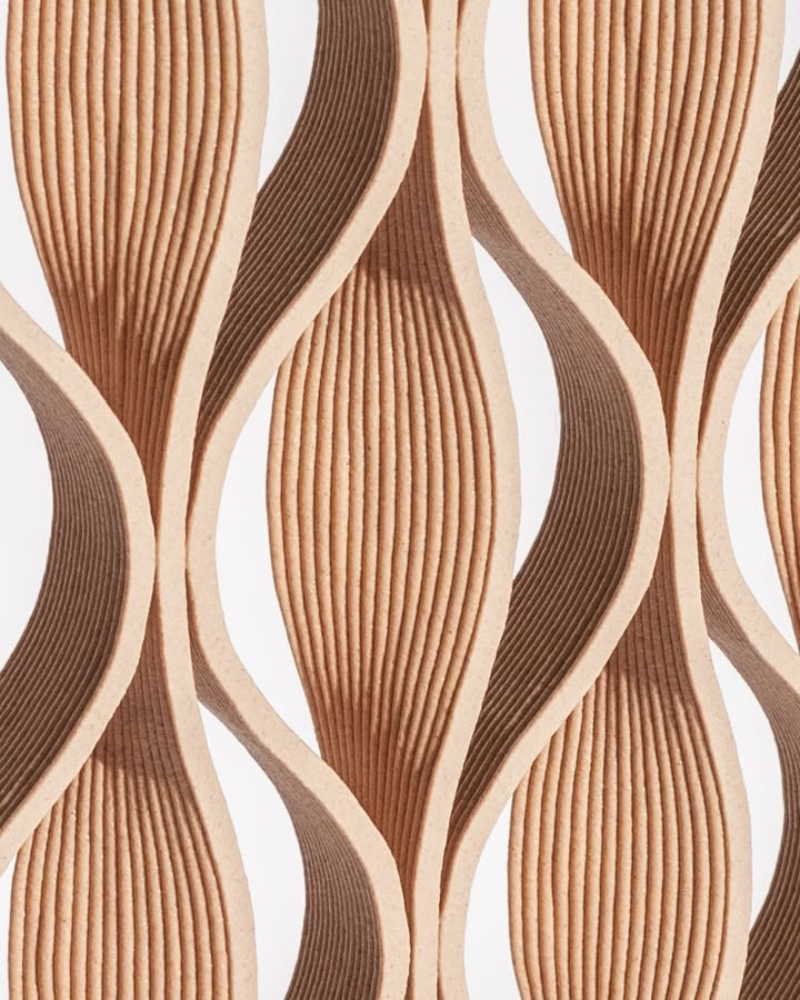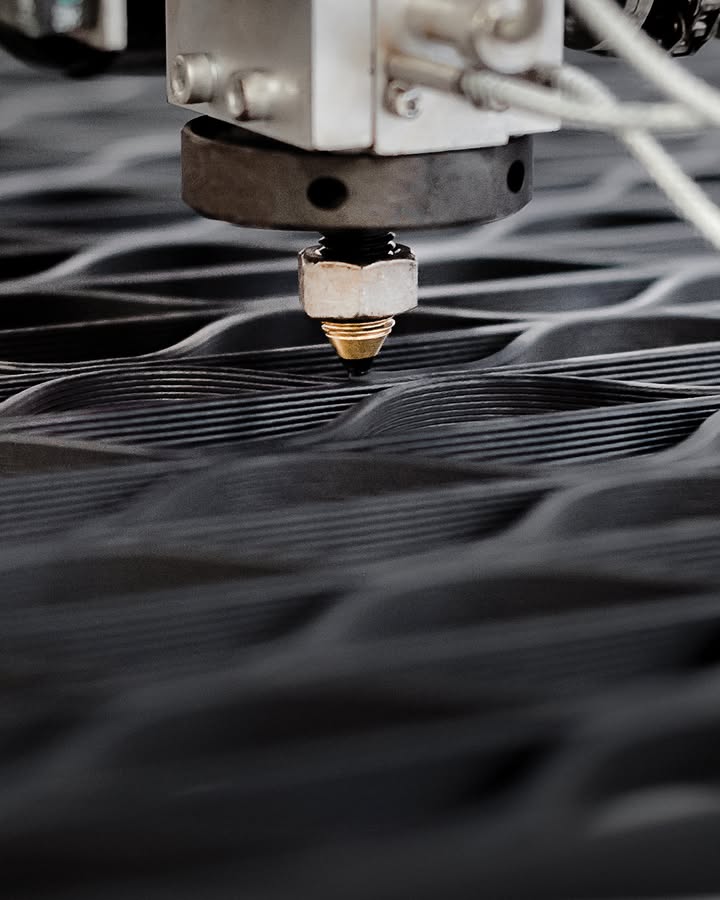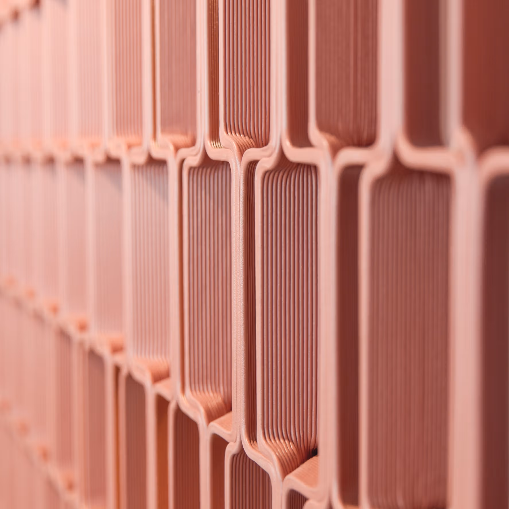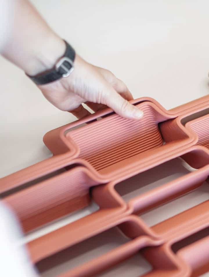 Le procédé développé par Aectual repose sur un mélange entre lignine et cellulose, résidus issus de la transformation du bois et fibres végétales telles que le lin ou le chanvre. Cette composition hybride confère au matériau une résistance suffisante pour des applications architecturales tout en conservant les propriétés sensorielles du bois : texture striée caractéristique de l’impression par couches, mais également parfum naturel.