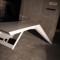 la forme, certes futuriste ne caractérise pas l’originalité de cette création, en effet ce bureau dispose de deux câbles d’acier pour une fixation murale. Par sa structure en fibre de verre l’allégeant au maximum il repose sur deux pieds et deux câbles.