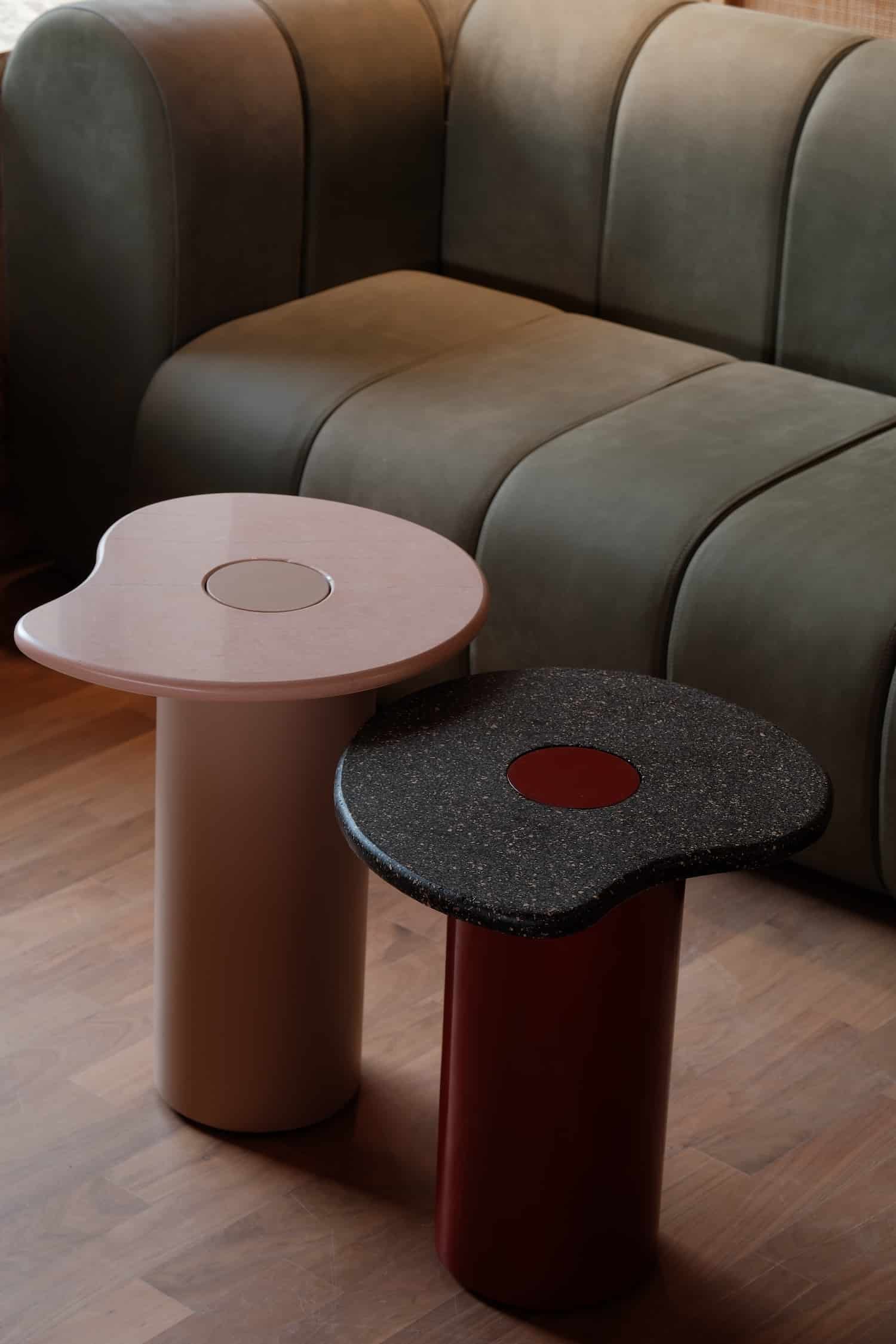 Plusieurs collaborations internationales témoignent de l’intérêt croissant pour ce matériau. Le studio canadien Man of Parts l’a intégré dans sa collection Surfside Drive Tables, utilisant la version Blonde Pip pour des plateaux aux courbes inspirées de l’architecture côtière de Nantucket. Le projet Balux Family Playground à Glyfada en Grèce a déployé des tables en Koukoutsi dans un contexte de restauration familiale, validant la pertinence du matériau pour des usages publics intensifs.