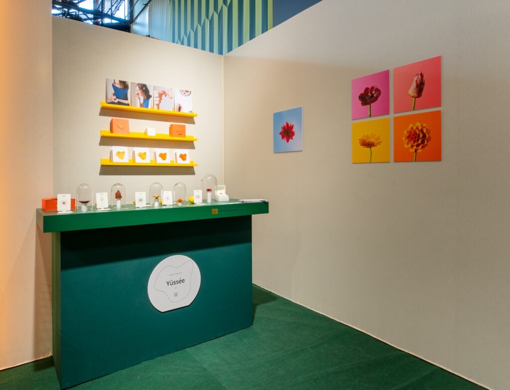 Sélectionné parmi plus de 250 candidatures pour Future On Stage, YÜSSÉE a présenté son univers au salon Maison&Objet dans une scénographie conçue comme une promenade sensorielle. Le stand invite les visiteurs à venir découvrir cette univers et à tester les produits.