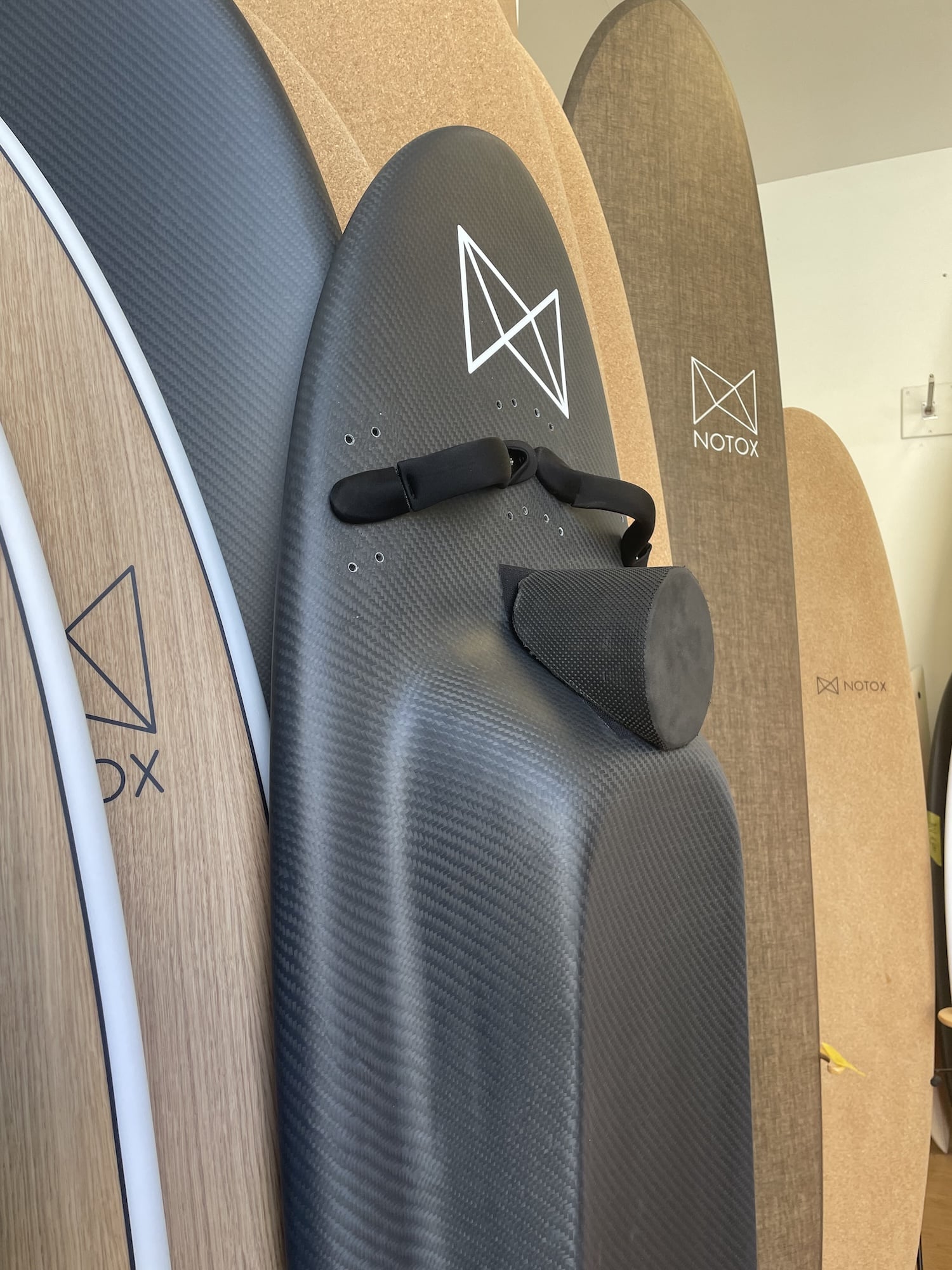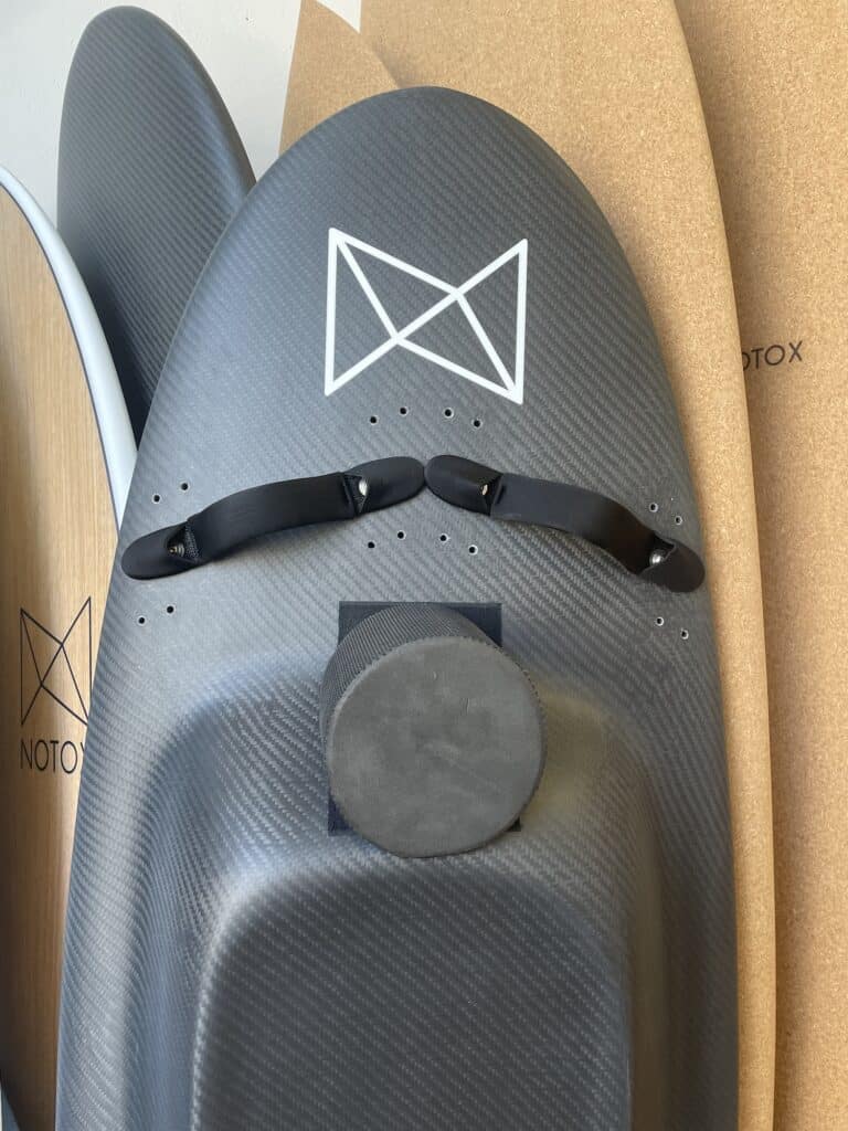 Chez NOTOX, l’écoresponsabilité n’est pas qu’un argument, mais un axe fondateur. La planche de Jules Cerf illustre cette philosophie pleine de promesses : le cœur du projet repose sur des matériaux upcyclés issus de l’aéronautique.