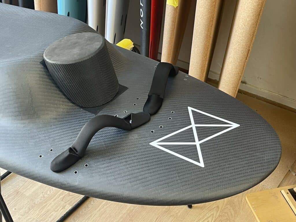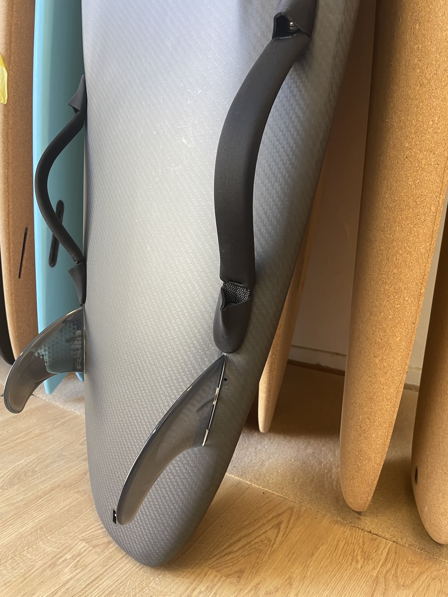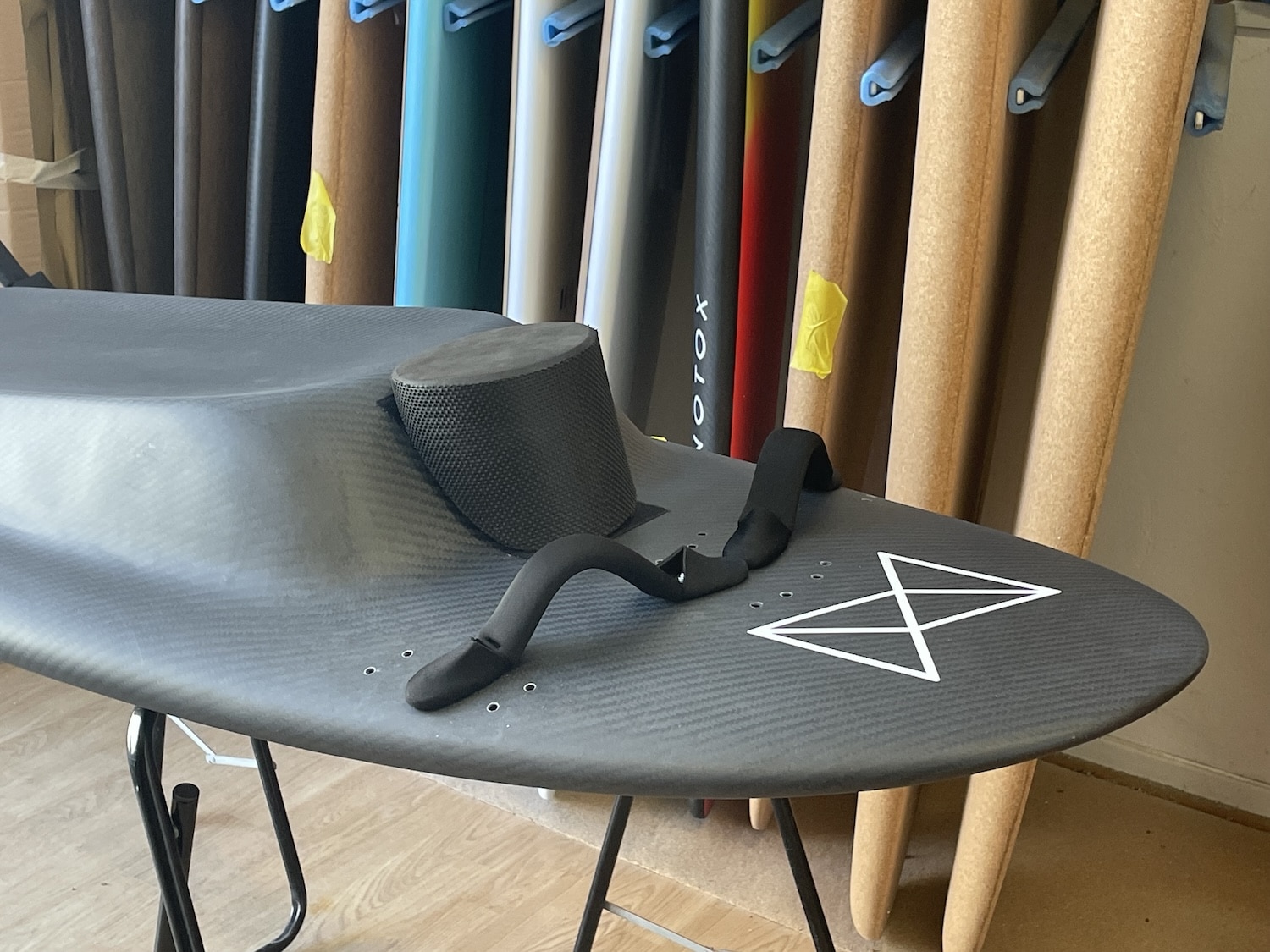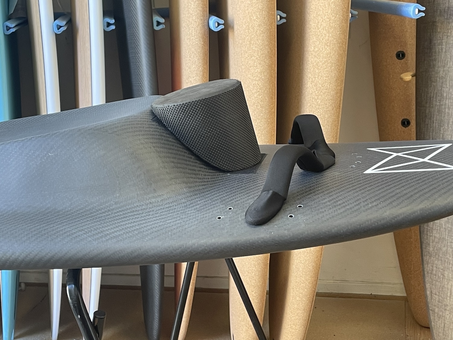 Les fibres de carbone, récupérées auprès de Dassault, offrent à la planche une rigidité sans compromis tout en allégeant drastiquement son poids. Le liège et la résine biosourcée complètent la structure pour une finition respectueuse de l’environnement comme du rider.