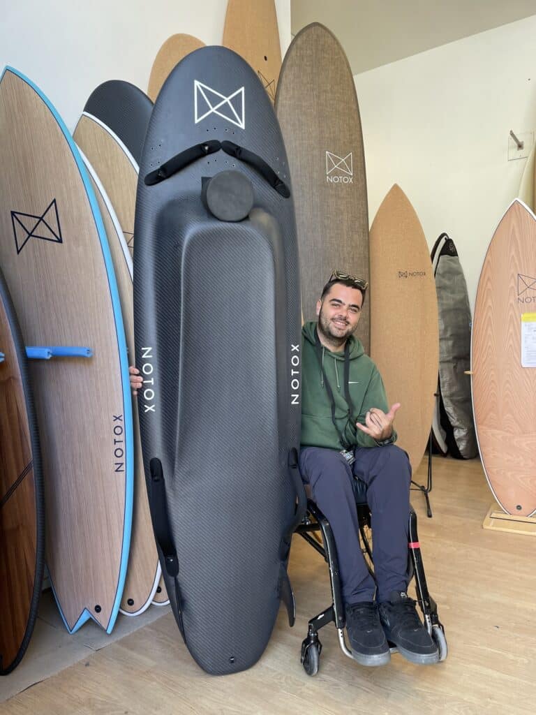 Quand design, technologie et inclusion se mêlent, nous ne pouvions passer à côté de ce projet. C’est exactement ce que propose la collaboration entre NOTOX et le surfeur Jules Cerf : une planche de surf unique, conçue pour repousser les limites de l’accessibilité sans jamais renier l’esthétique ni la performance et les sensations !